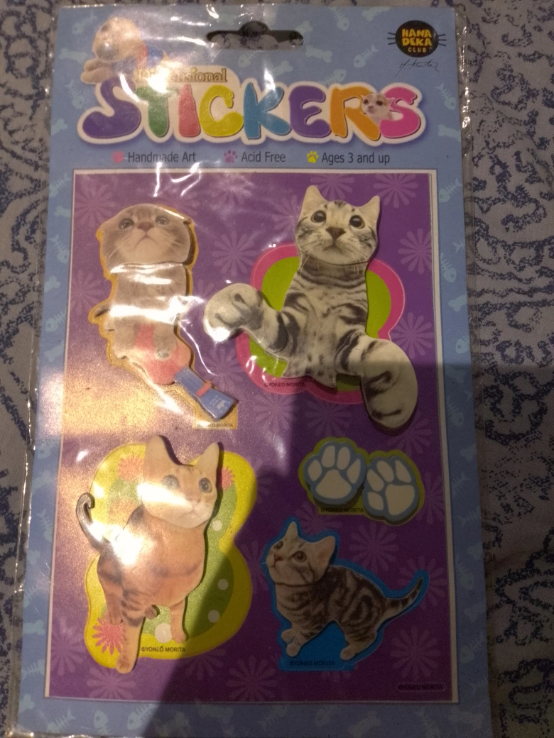 Set of adorable cat stickers. Handmade art. Acid-free. Ages 3 and up. Includes various cat poses and paw prints.