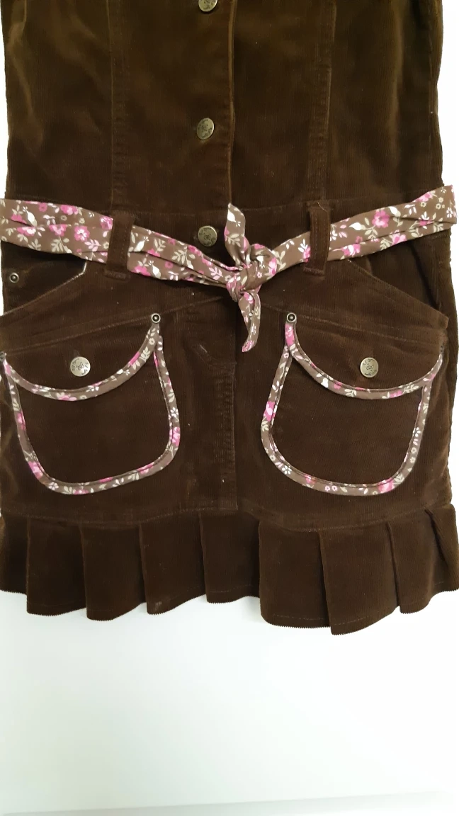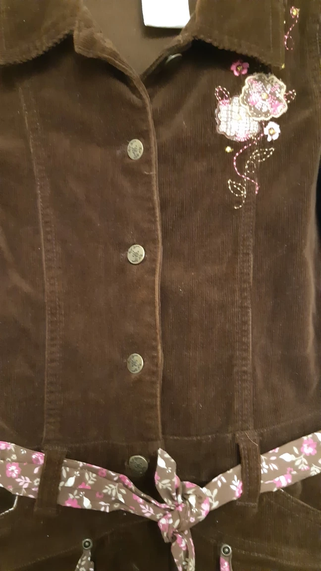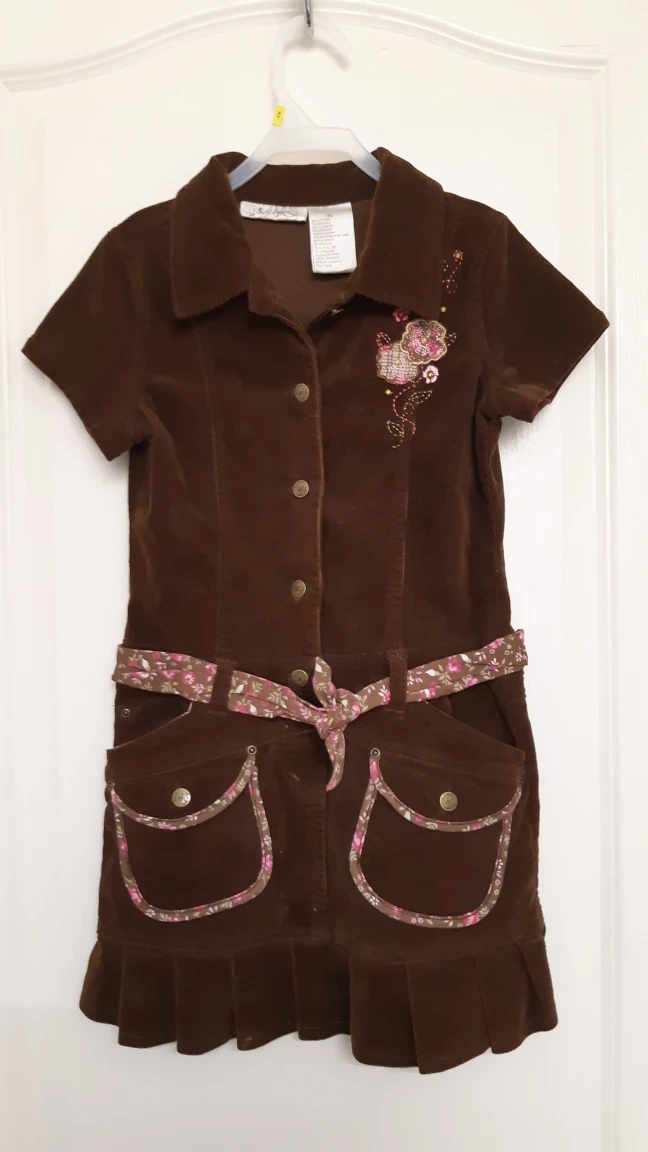 Gently used, but great condition! Fully cotton. Has fully functional pockets and a cute floral belt, with embroidered flowers and a button close. Available until ad removed.