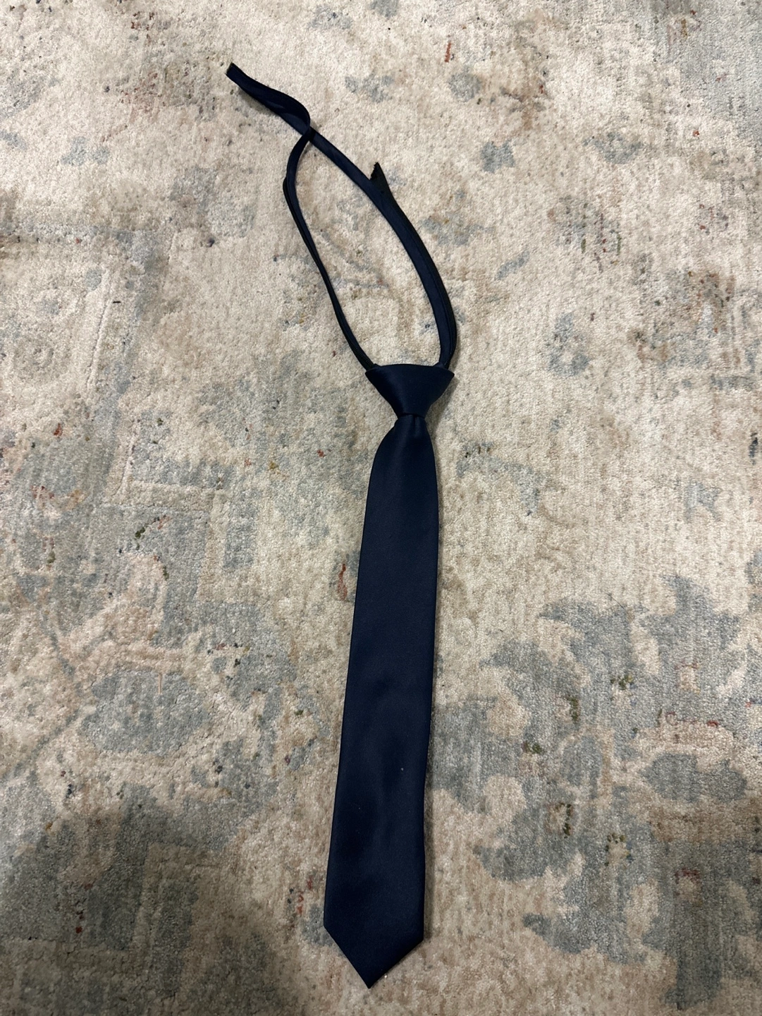 Dark navy blue children's necktie. Pre-tied. Simple design. Great for school or special occasions.