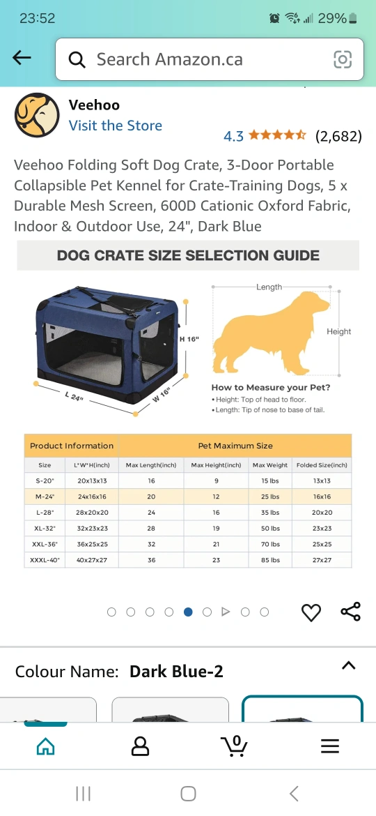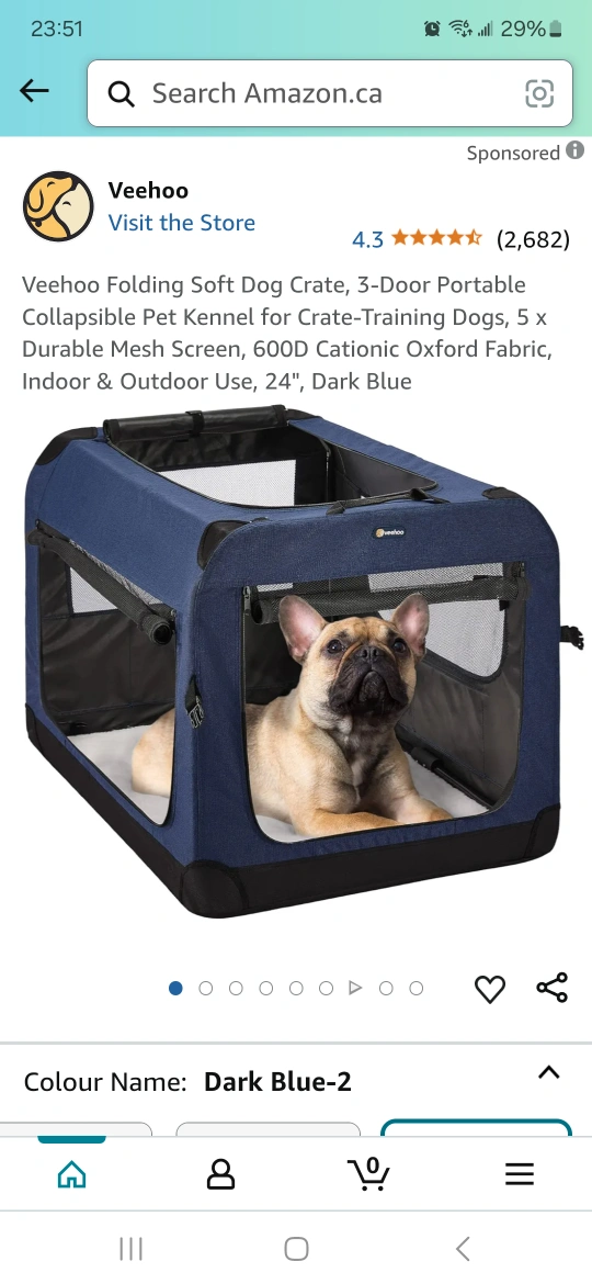 New Veehoo Folding Soft Dog Crate, 3-Door Portable Collapsible Pet Kennel for Crate-Training Dogs, 5 x Durable Mesh Screen, 600D Cationic Oxford Fabric, Indoor & Outdoor Use, 24", Dark Blue. Perfect for travel or everyday use. Pet Carrier - Blue Collapsible Soft-Sided Crate Soft Dog CratePet Blue Collapsible H41× W 41× L 61 cm