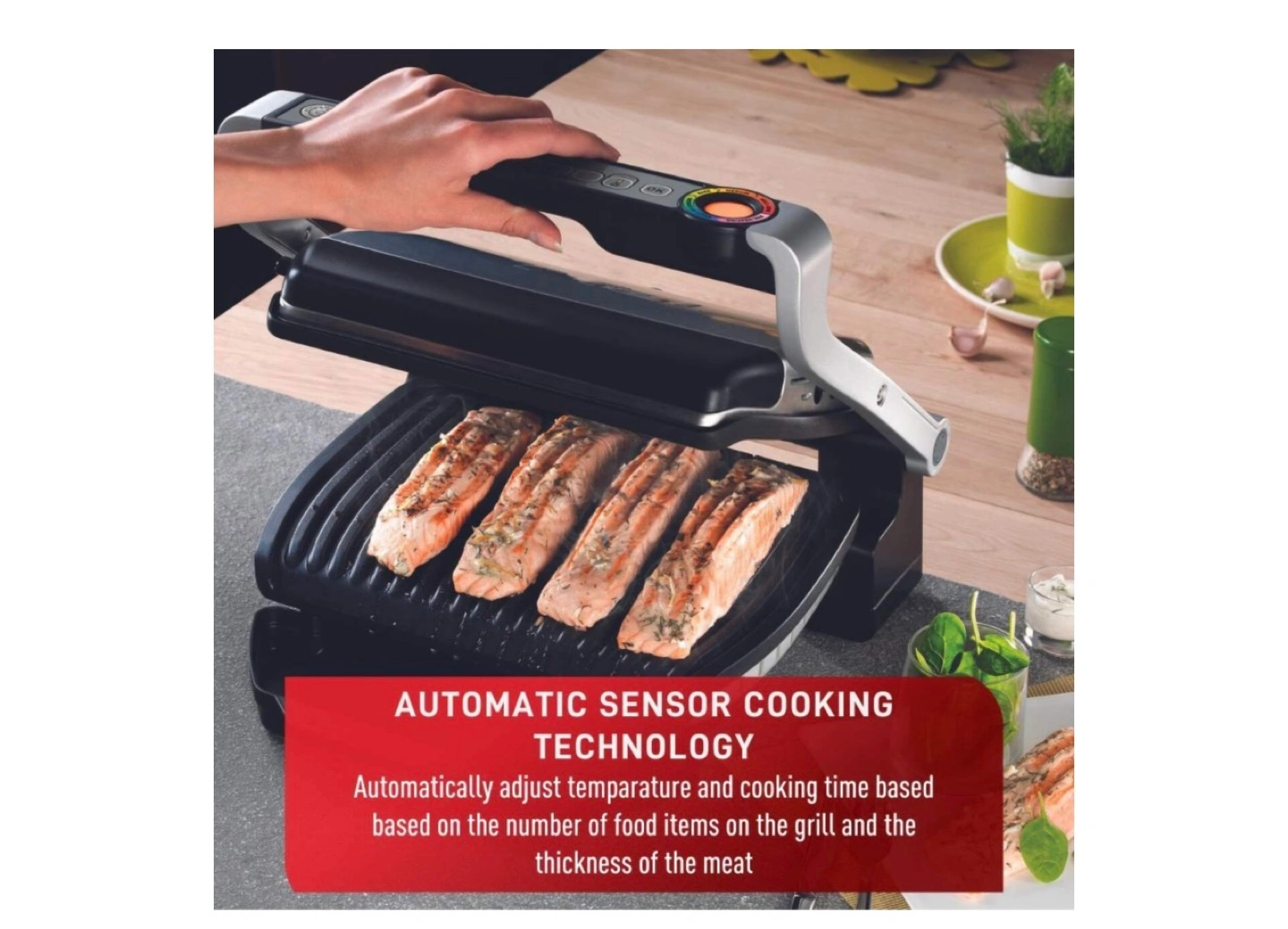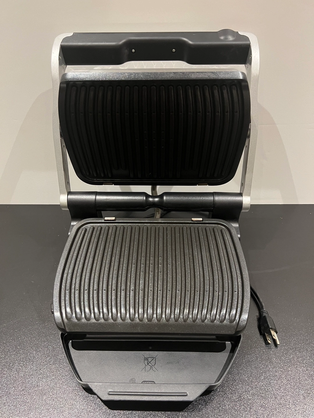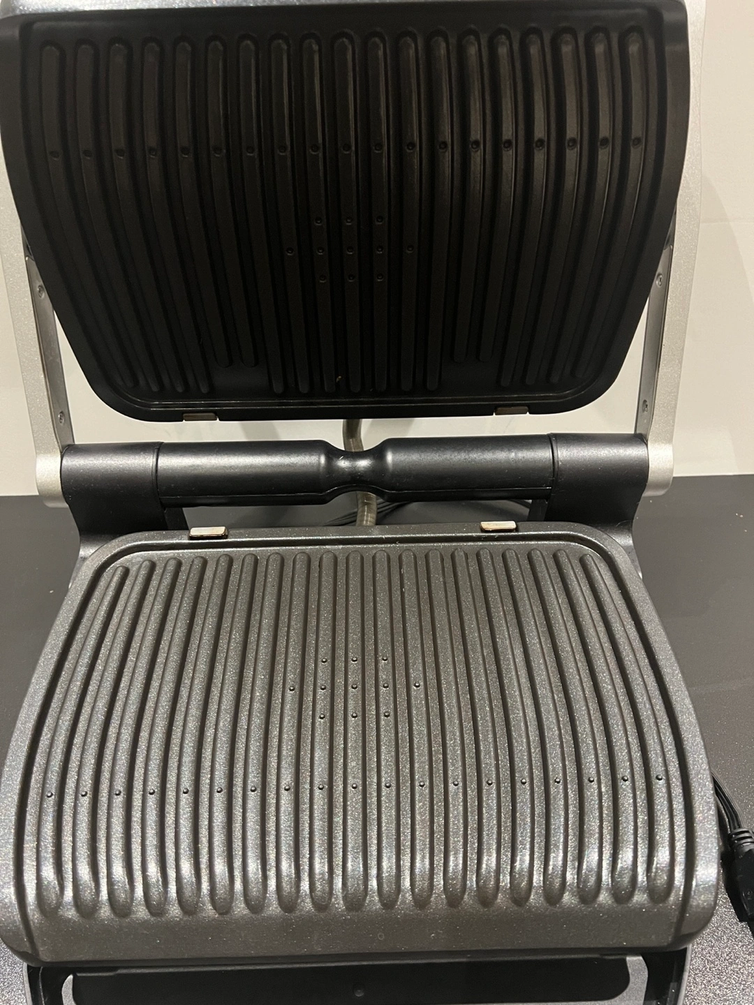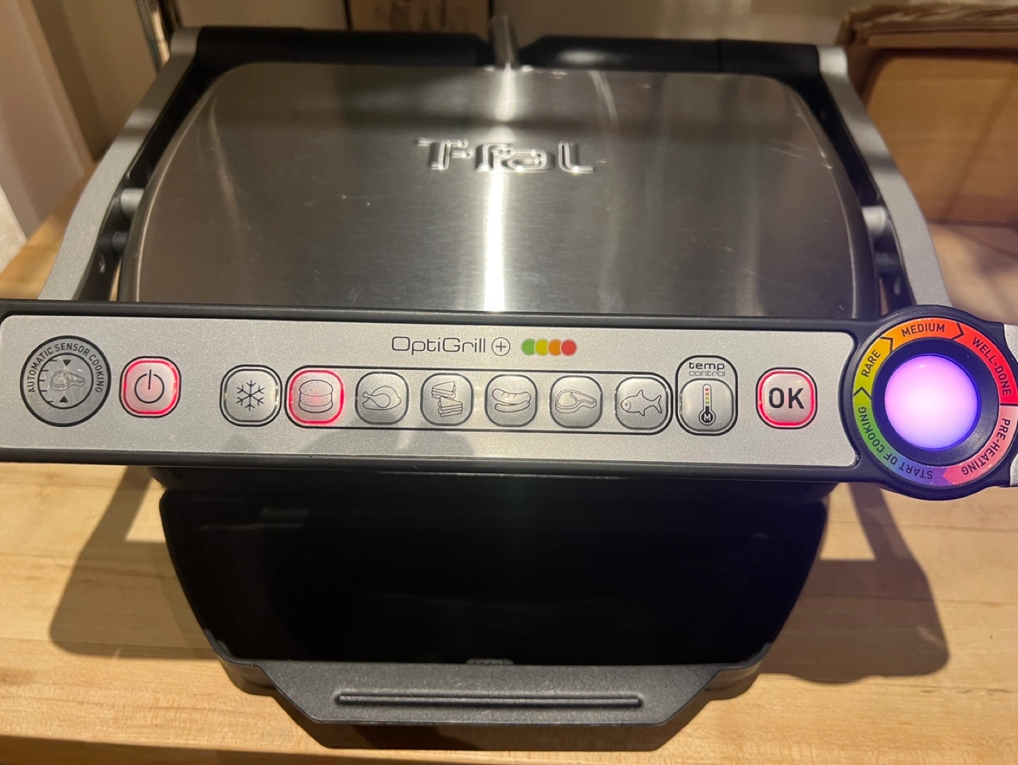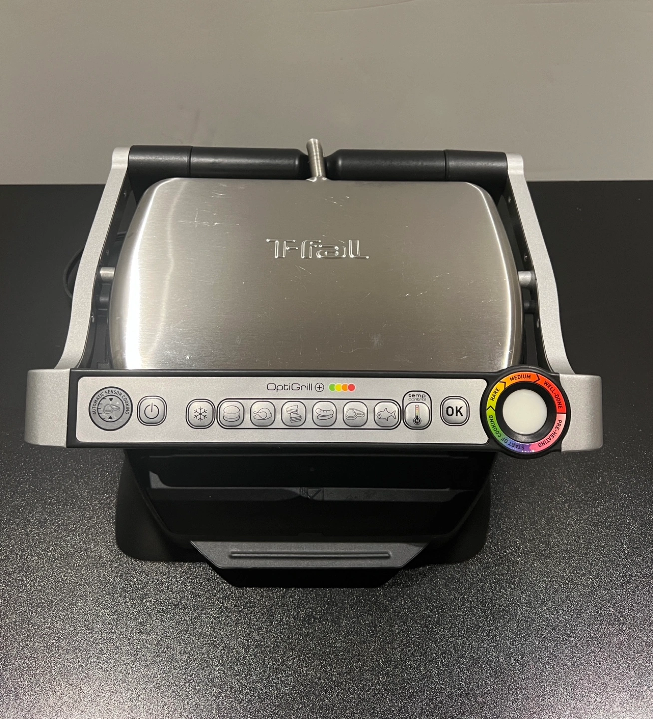 Moving Sale: This T-fal OptiGrill+ electric contact grill is truly fantastic and so easy to use and clean. It was used only a few times and I’m only selling it because my new stove-top has a built in grill. This grill was purchased from Canadian Tire for $279. Product Details: Take your grilling indoors with this smart countertop grill that delivers perfect results every time. The T-Fal OptiGrill Indoor Electric Grill takes the guesswork out of cooking with its automatic sensor technology and six built-in programs for burgers, poultry, sandwiches, sausages, red meat and fish. Just select your program and the OptiGrill automatically adjusts time and temperature to ensure your food is cooked exactly how you like it, whether rare, medium or well done. Features: Packed with innovative technology that takes all the guesswork out of grilling! The Automatic Sensor Cooking technology adjusts temperature and cooking time based on the quantity and thickness of meat for perfect results The six pre-set options (Burger, Poultry, Sandwich, Sausage, Red Meat, and Fish) automatically tweak cooking time and temperature based on what meat you choose. Cooking level indicator ensures it's always cooked the way you love it You can also try manual mode with adjustable temperatures, for endless cooking options. The slanted cooking surface allows cooking juices to run off easily The OptiGrill+ is equipped with Die-cast housing with two removable non-stick coated plates, making clean-up a breeze.