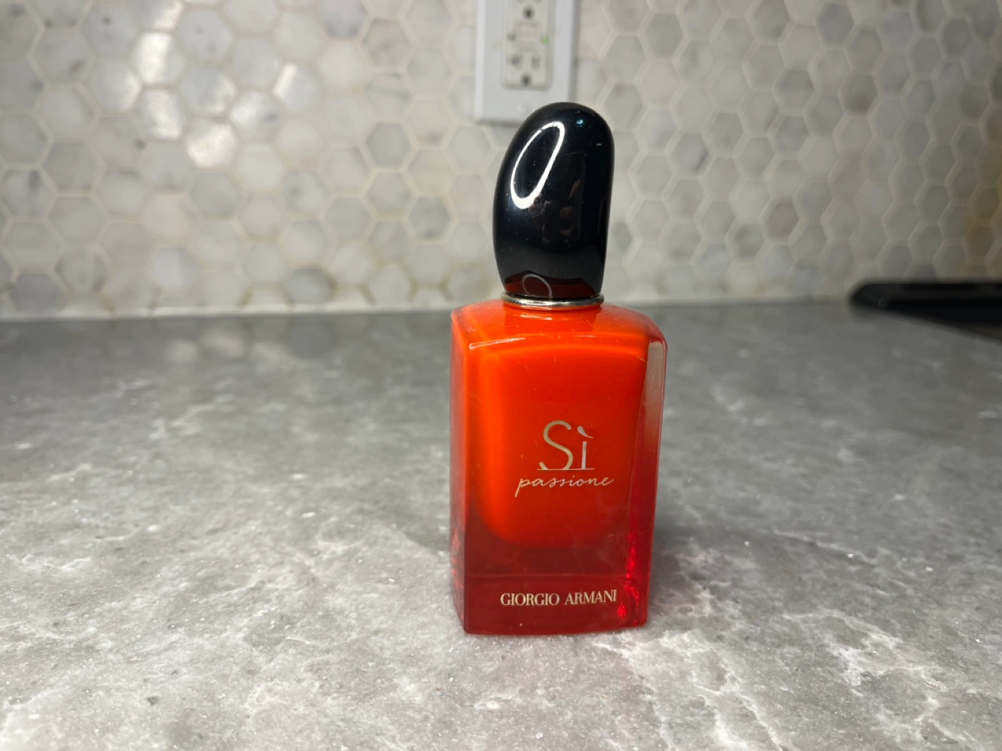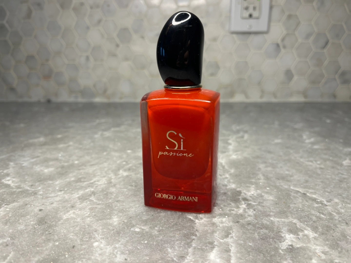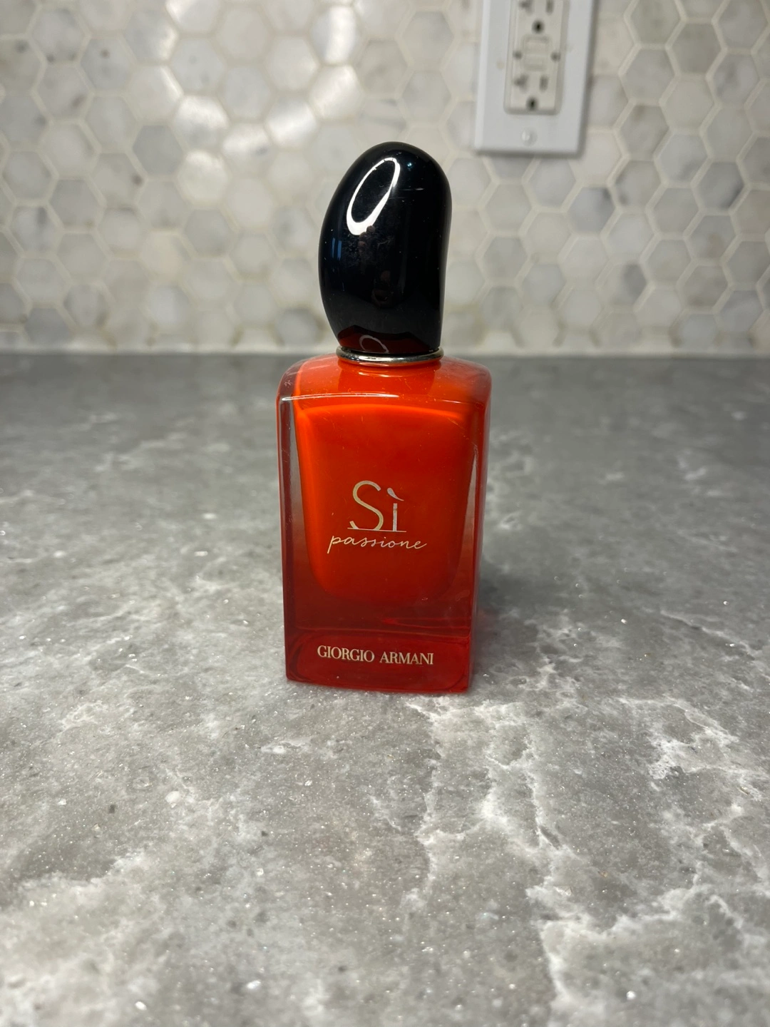 brand new bottle Giorgio Armani Si Passione perfume. Red glass bottle, black cap. 50Ml