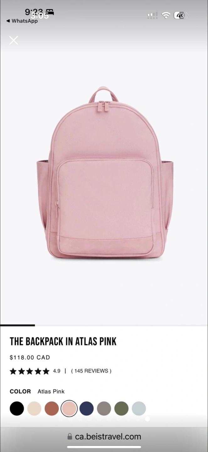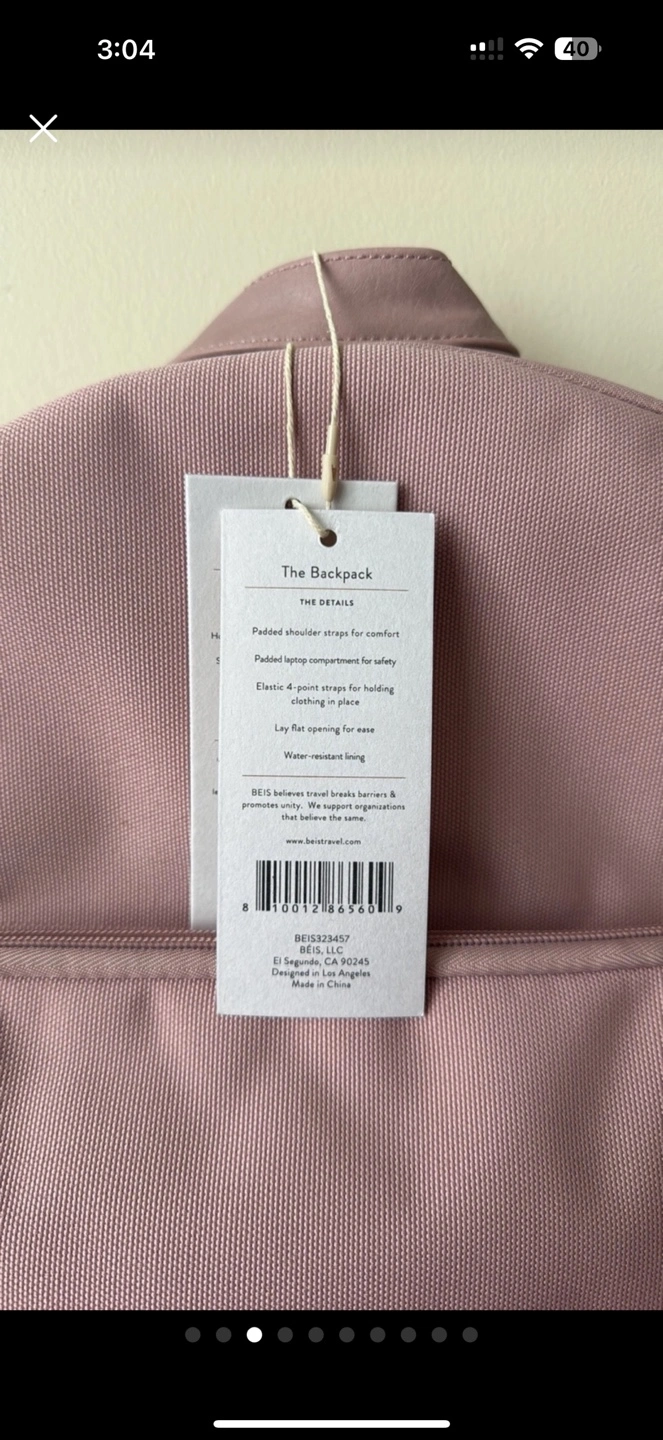 MEETING LOCATIONS: Scarborough Town Centre Mall ***BEIS The Backpack*** RETAIL PRICE: $118.00 https://ca.beistravel.com/products/the-backpack-in-atlas-pink ✅ ✅ Absolutely Brand-new. Received it this past Christmas as a gift + BEIS hand-bag (please see my listing) I already have the same brand bags!! ***ITEM DESCRIPTION & FEATURES: •••Dusty rose colour •••Padded straps for comfort ‼️Padded laptop compartment •••Elastic 4-point straps for holding •••Lay flat opening for ease. Water resistant lining ✅ Laptop Friendly ✅ Key Leash (photo#8) ✅ Trolley Pass-through (photo#4) ✅ Water Bottle Pocket ✅ Organizational Pockets ***DETAILS & SPECIFICATIONS Dims: 13" W x 19" H x 5.5" D Materials: Cotton Body, PVC Trim, Polyester Lining Care: Spot Clean