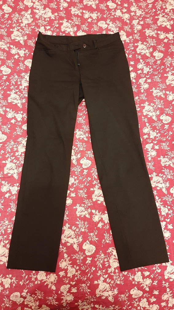 Straight-leg black dress pants. 2 front pockets. Classic style, perfect for work or special occasions. Good condition.