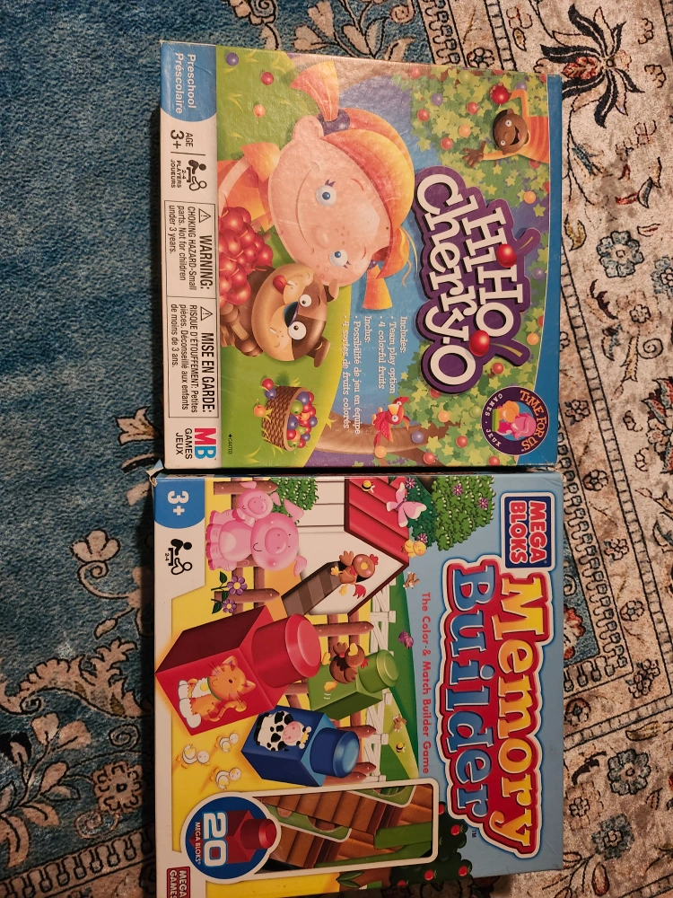 Bundle includes two used children's board games. Hi Ho Cherry-O game and Memory Builder game. Ages 3+. 10$ each or both for $15