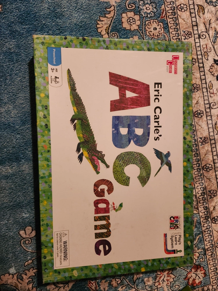 Preschool alphabet game. Ages 3+. Features colourful illustrations. Includes game board and playing pieces.