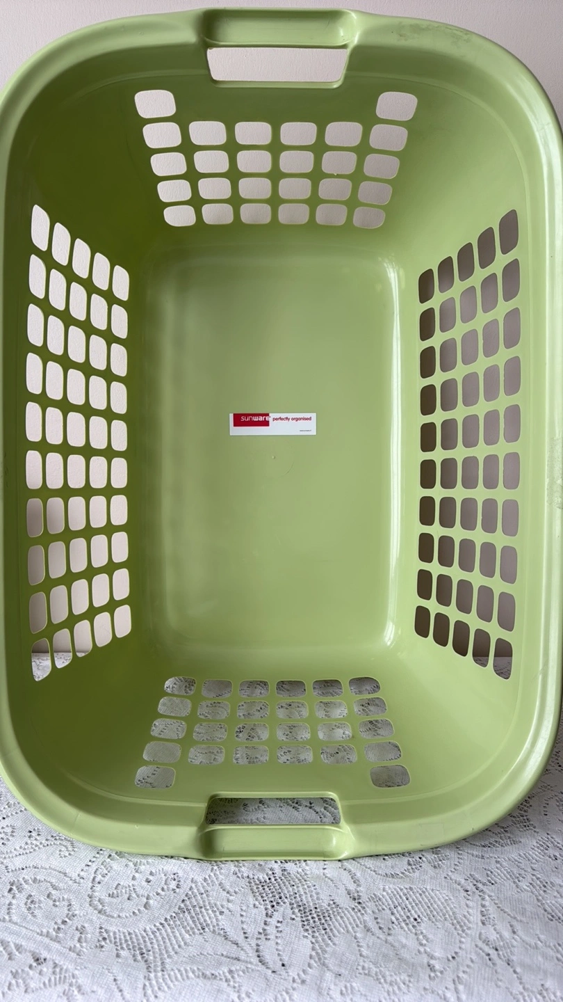 MEETING LOCATION: β Scarborough Town Centre Mall π° Cash payment only βοΈ Please check my listing for more items! LAUNDRY BASKET: β Family Size β Rectangular shape β In a very attractive honeydew melon π green colour β Plastic construction with handles on sides β Absolutely no damage, used gently (Just the outer bottom part has scratches from placing it on the shelf) DIMENSIONS: Width & Depth in last 2 photos Height: 11 inches approximately