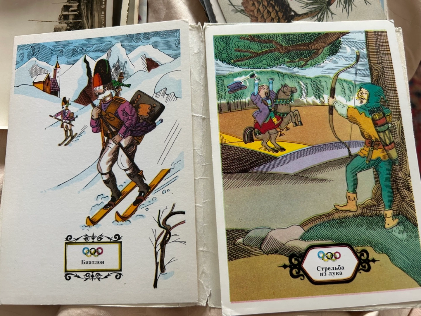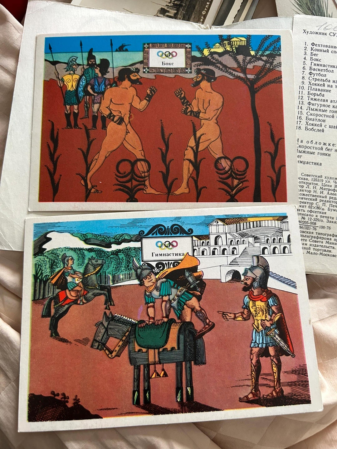 This is a 1976 set of 15 Vintage Russian Russia USSR communist era postcards History of the 5 rings / the Olympics Originally set had 18 cards 10.00 Could mail out for additional 4.00 And e-transfer Flexible re pickup Elmsdale Road M4J 3M3 Donlands O'Connor East York Don Mills south exit off DVP