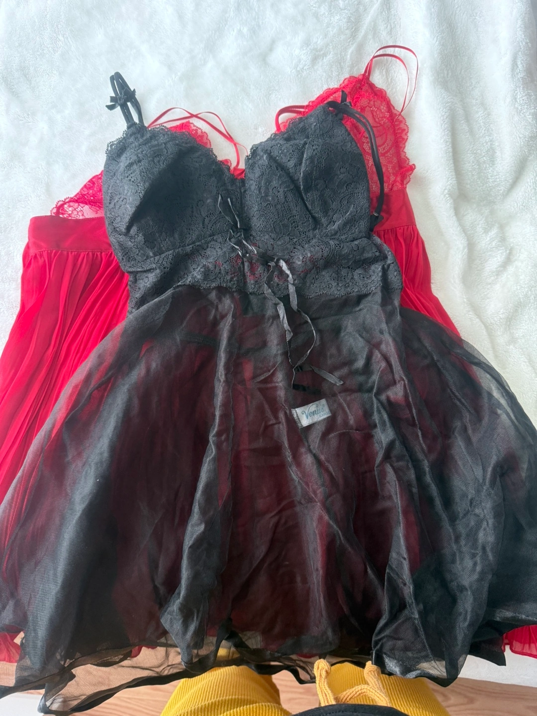 Brand new .Gorgeous black lace chemise, sheer overlay.
