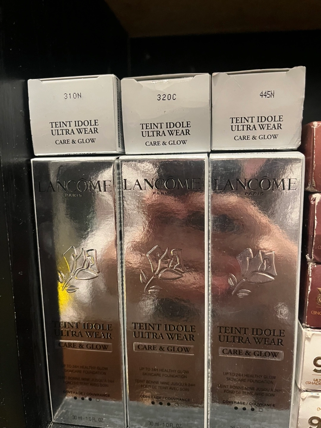 Lancôme Teint Idole Ultra Wear Care & Glow foundation. New, sealed boxes. Shades include 310N, 320C, and 445N. 30ml/1 fl oz each. $15 a bottle