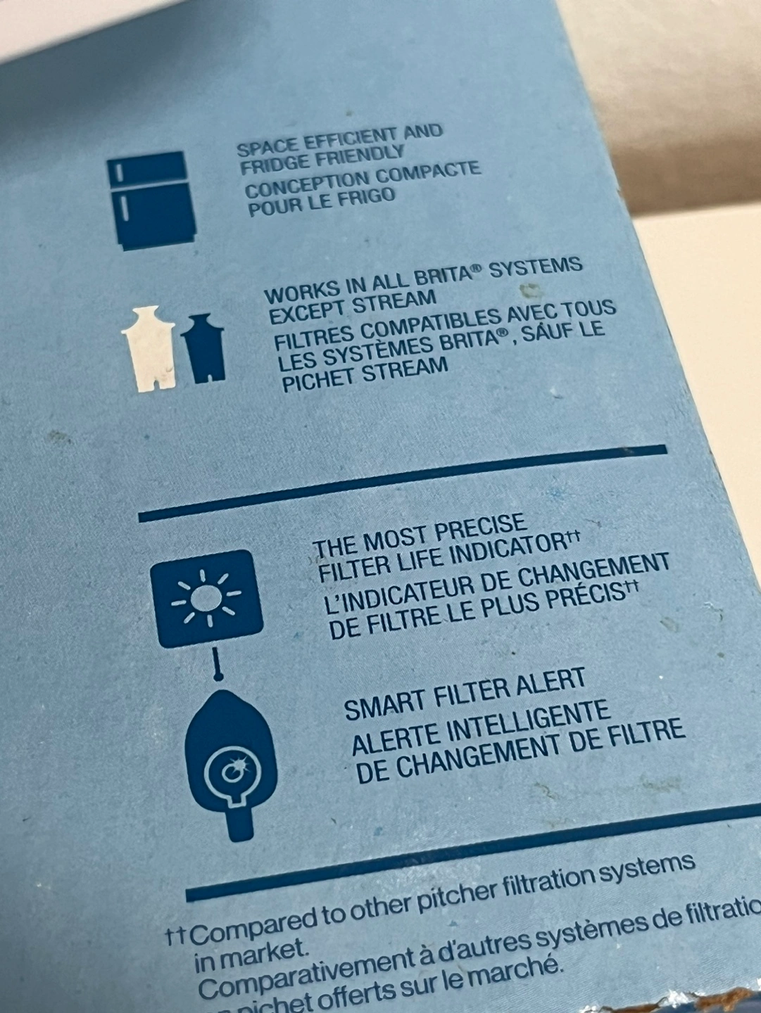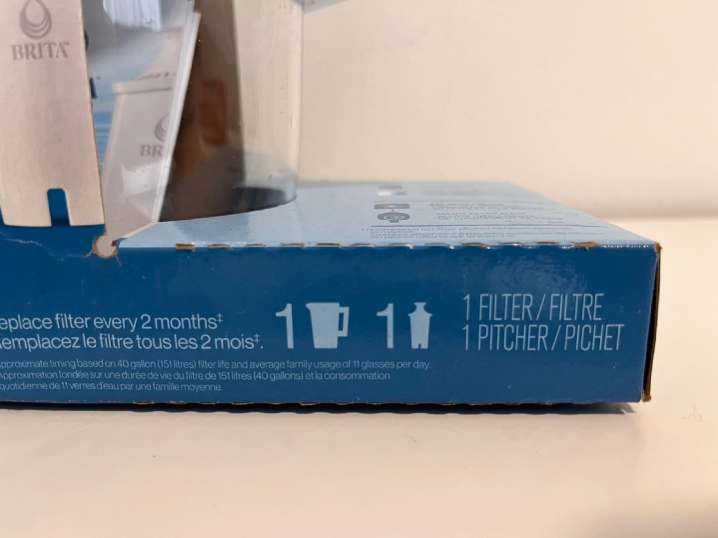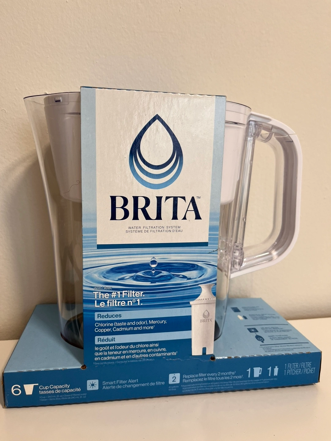 New design. Brita water filter pitcher. Includes one filter. Reduces chlorine taste and odour, mercury, copper, cadmium and more. Space efficient and fridge friendly. See photos for all performance information. Digital LED reminder to change filter. Approximately every 2 months. Pickup Balliol St. Midtown, close to Yonge.