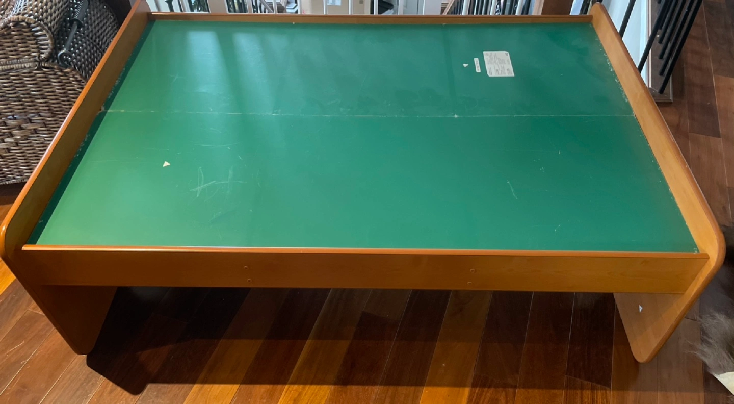 ◾️Large KidsKraft wooden activity table/train table. ◾️Double faced wooden surface ◾️Storage boxes can be placed underneath (not included) ◾️Excellent for imaginative play. ◾️Shows some wear and tear on the surface boards but overall good condition. ◾️Retails for $195 CAD + tax