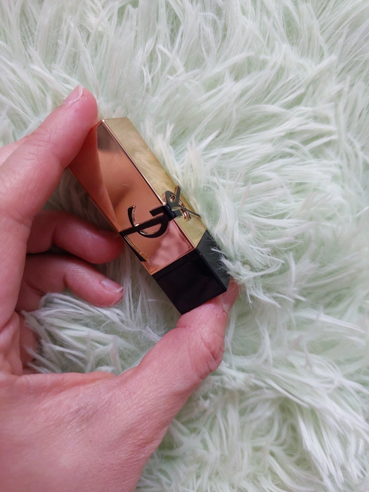 Pre-owned Yves Saint Laurent lipstick. Rose coloured. Gold and black casing. Used once.