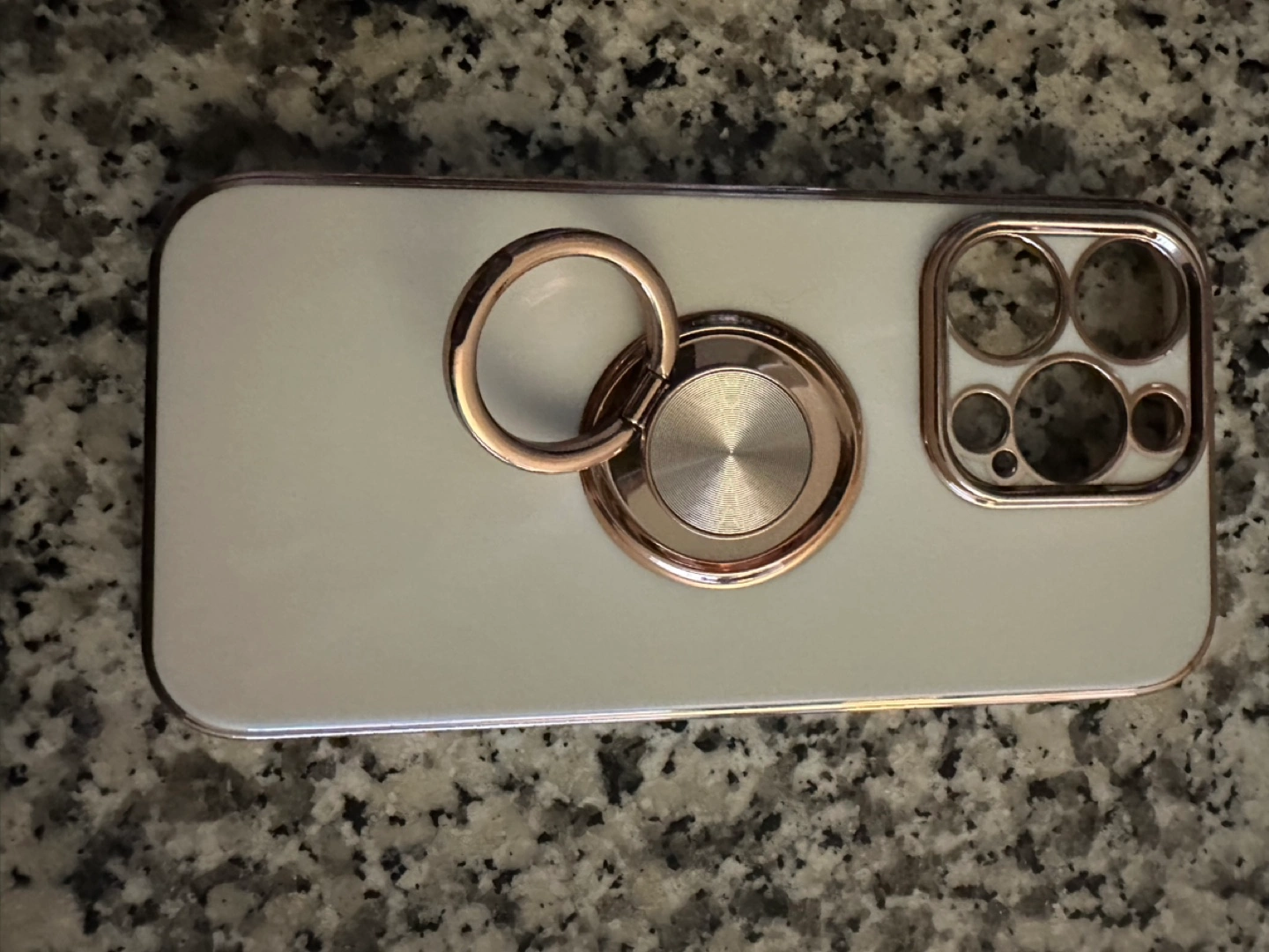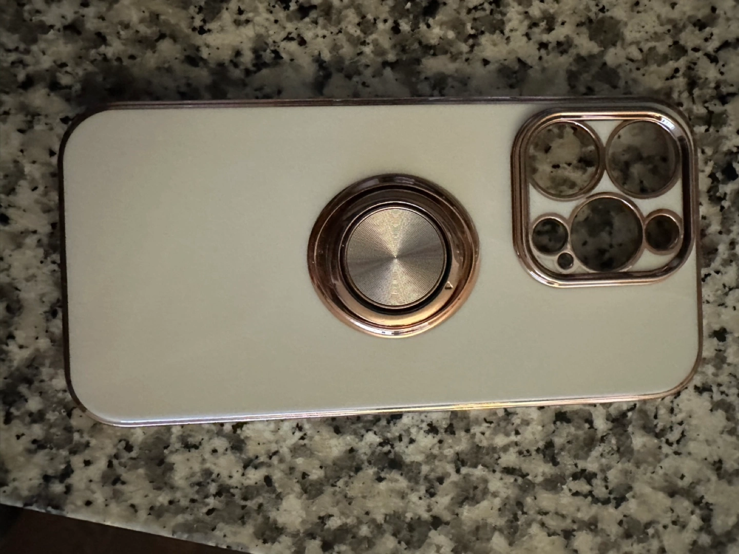 Stylish off-white phone case with rose gold accents. Features a rotating ring holder for easy gripping and stand functionality. Brand new out of box. Just didn’t like the style and can’t return. Pet free smoke free home.