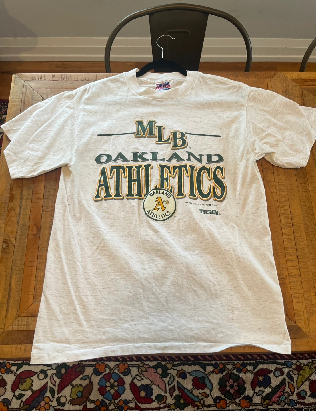 Men's short sleeve t-shirt. Features a large Oakland Athletics graphic. White, size large. Made by Trench Mfg. Co. Inc. Delivery available, let me know if there are any questions. Please feel free to check out my other listings, happy to do a deal on multiple items! Pickup at Bathurst/Dupont