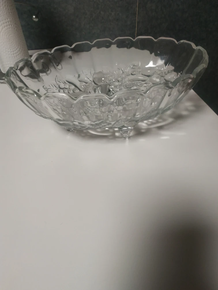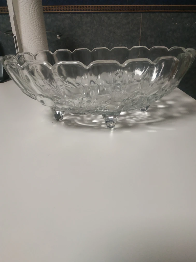 Glass fruit bowl 12 "x 8. 5" x 4.5" It's heavy and in good condition.