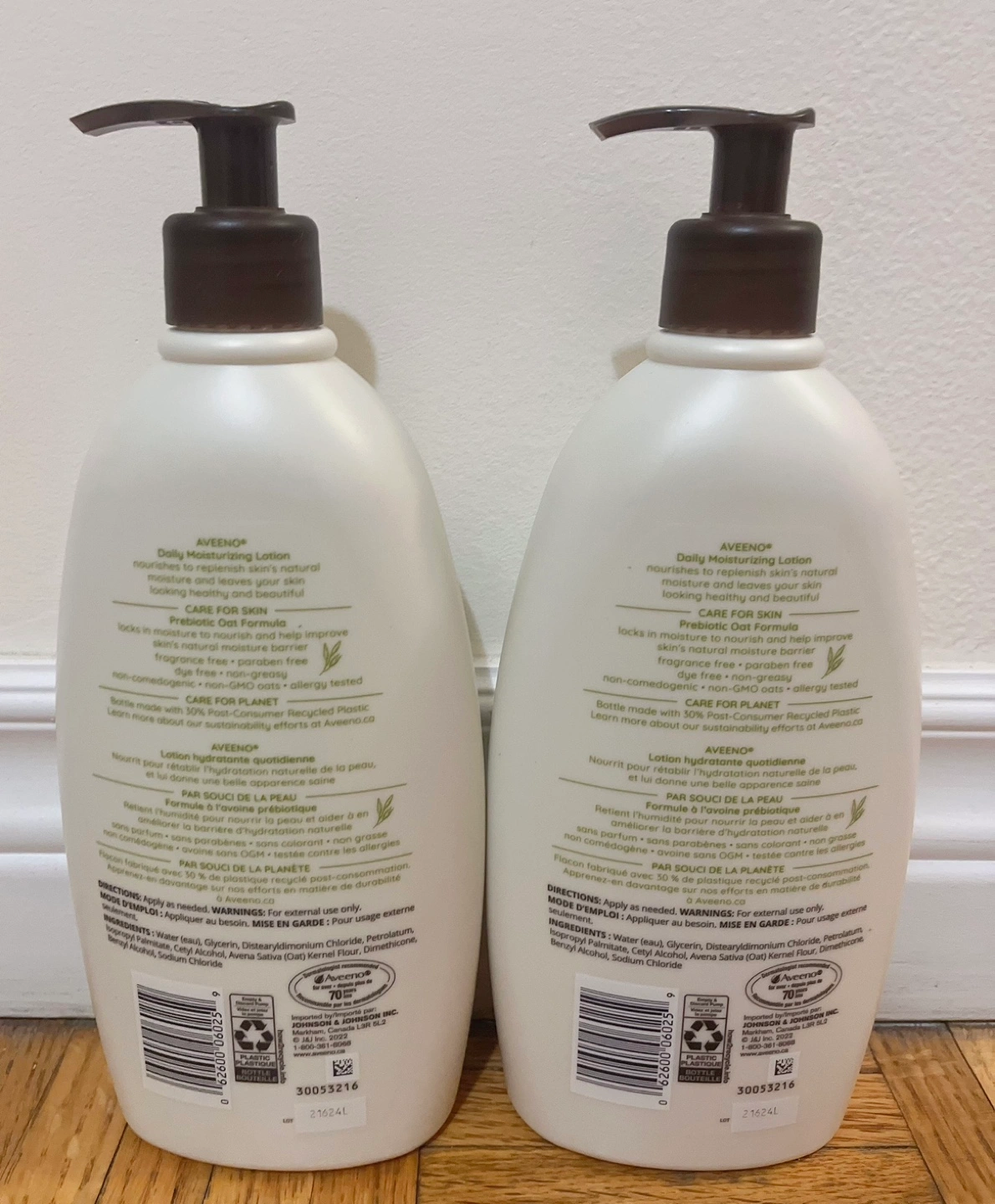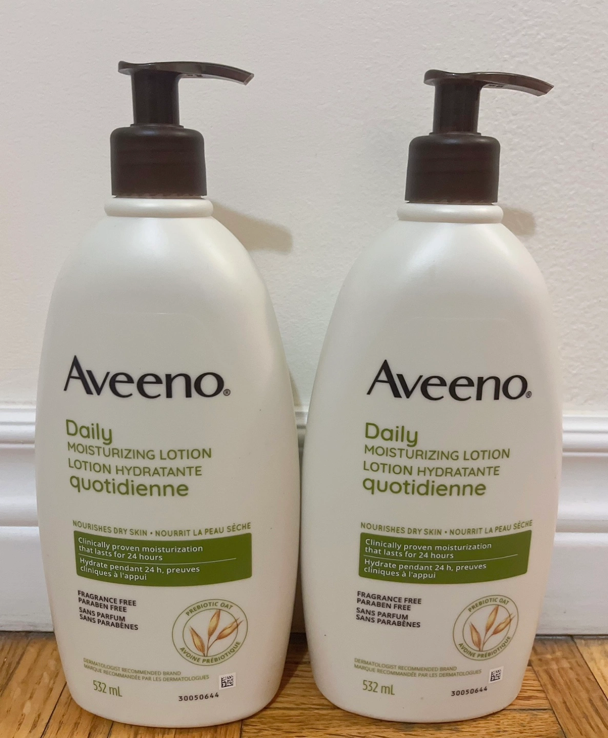 Brand new.Pair of unopened Aveeno Daily Moisturizing Lotions. A bottle of 532ml. Two bottles are $27.Cash only