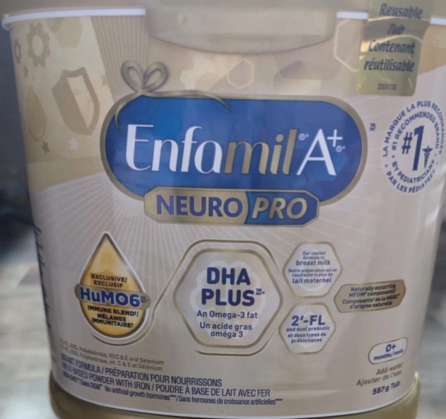 Enfamil A+ NeuroPro infant formula. 0+ months. DHA Plus. ImmunoBlend. Contains 587 g. Reusable container.