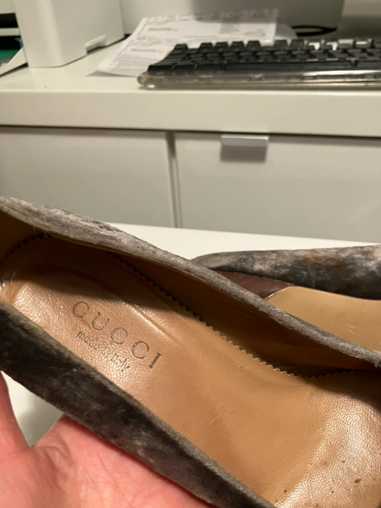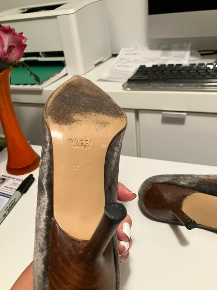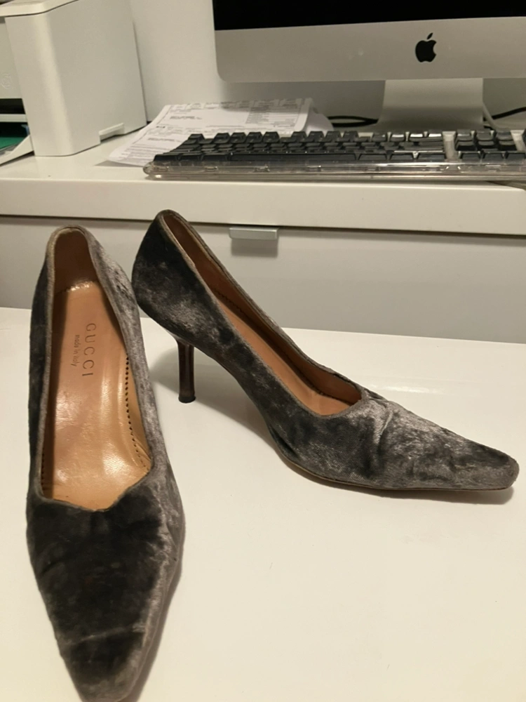 GUCCI Suede grey 3.” Stiletto heels leather sole with good heel comfy size 6.5