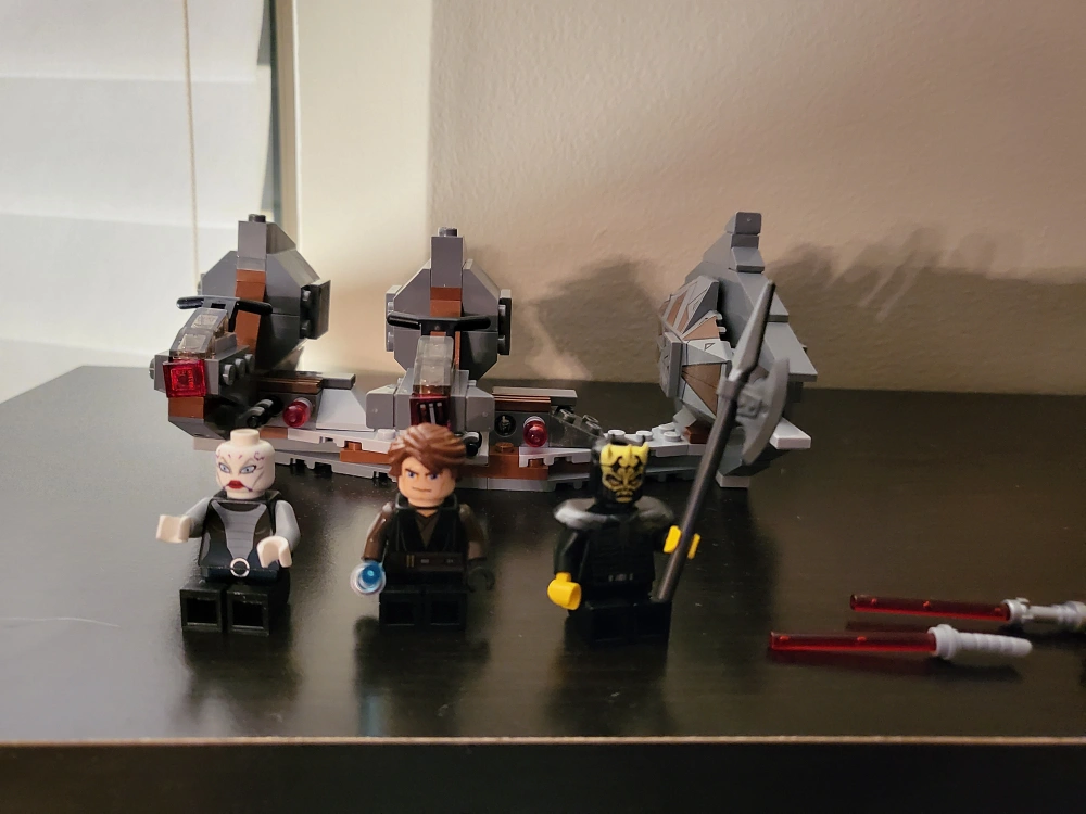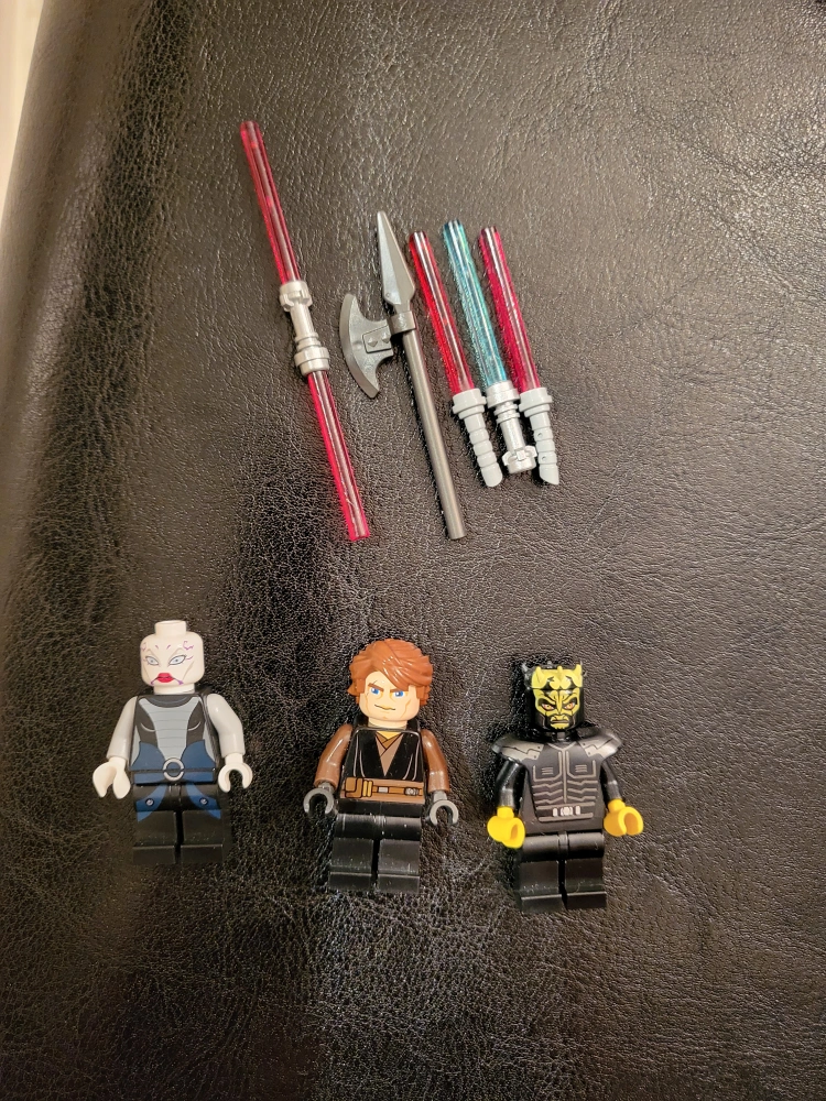 LEGO Star Wars set. Includes minifigures of Asajj Ventress, Anakin Skywalker, and Savage Opress. Lightsabers and other accessories included. Some minor wear. Lego Star Wars Sith NightSpeeder 7957 No box. No instructions. All minifigures and weapons included! $80 obo.
