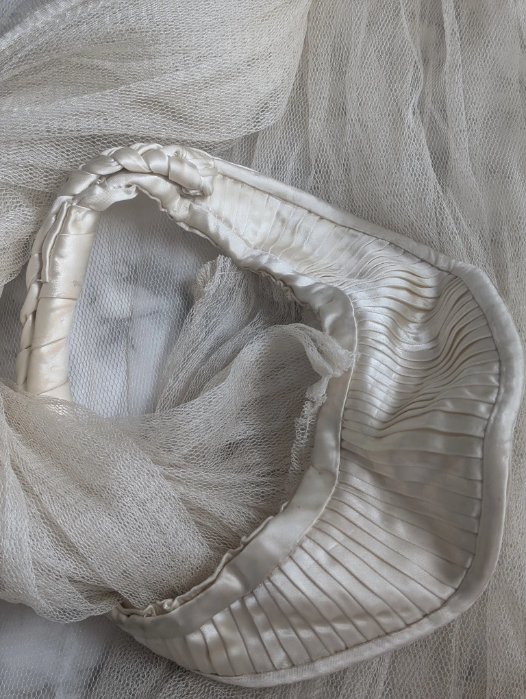 Vintage 40's cream satin wedding dress w veil s/m needs work