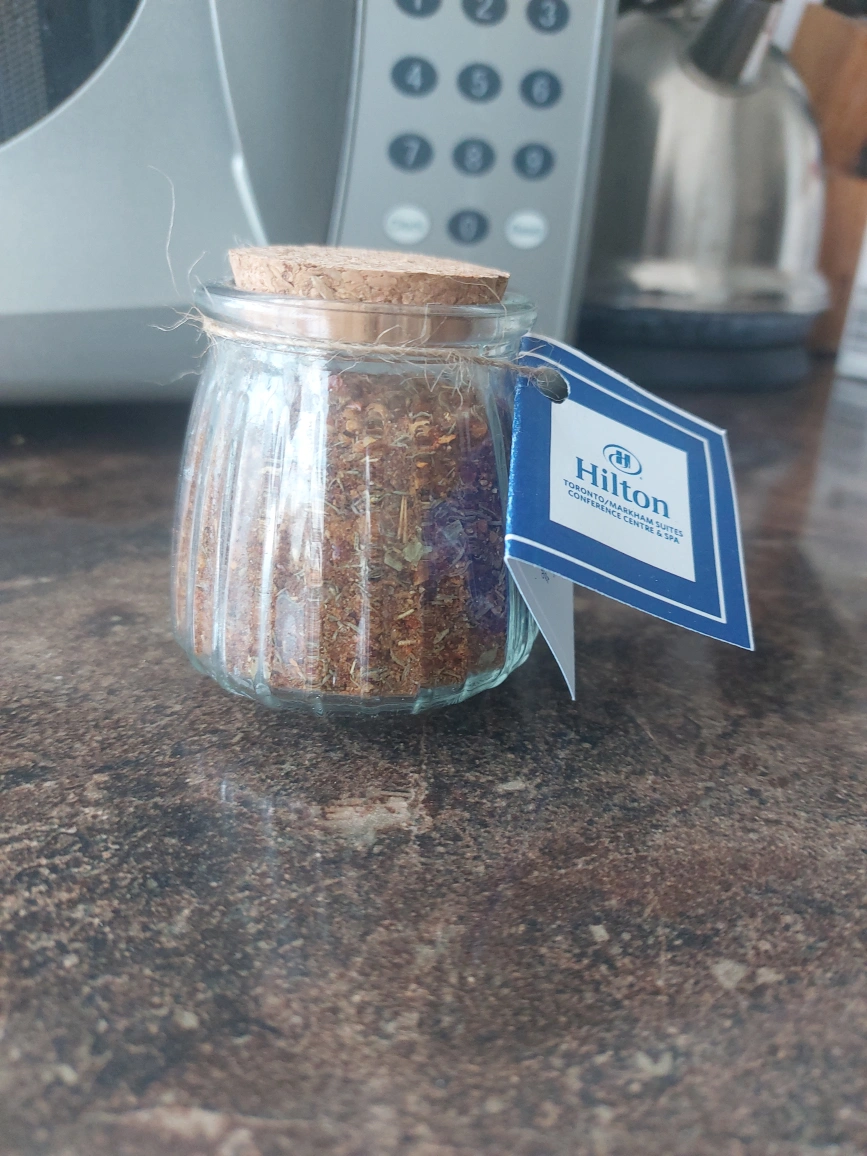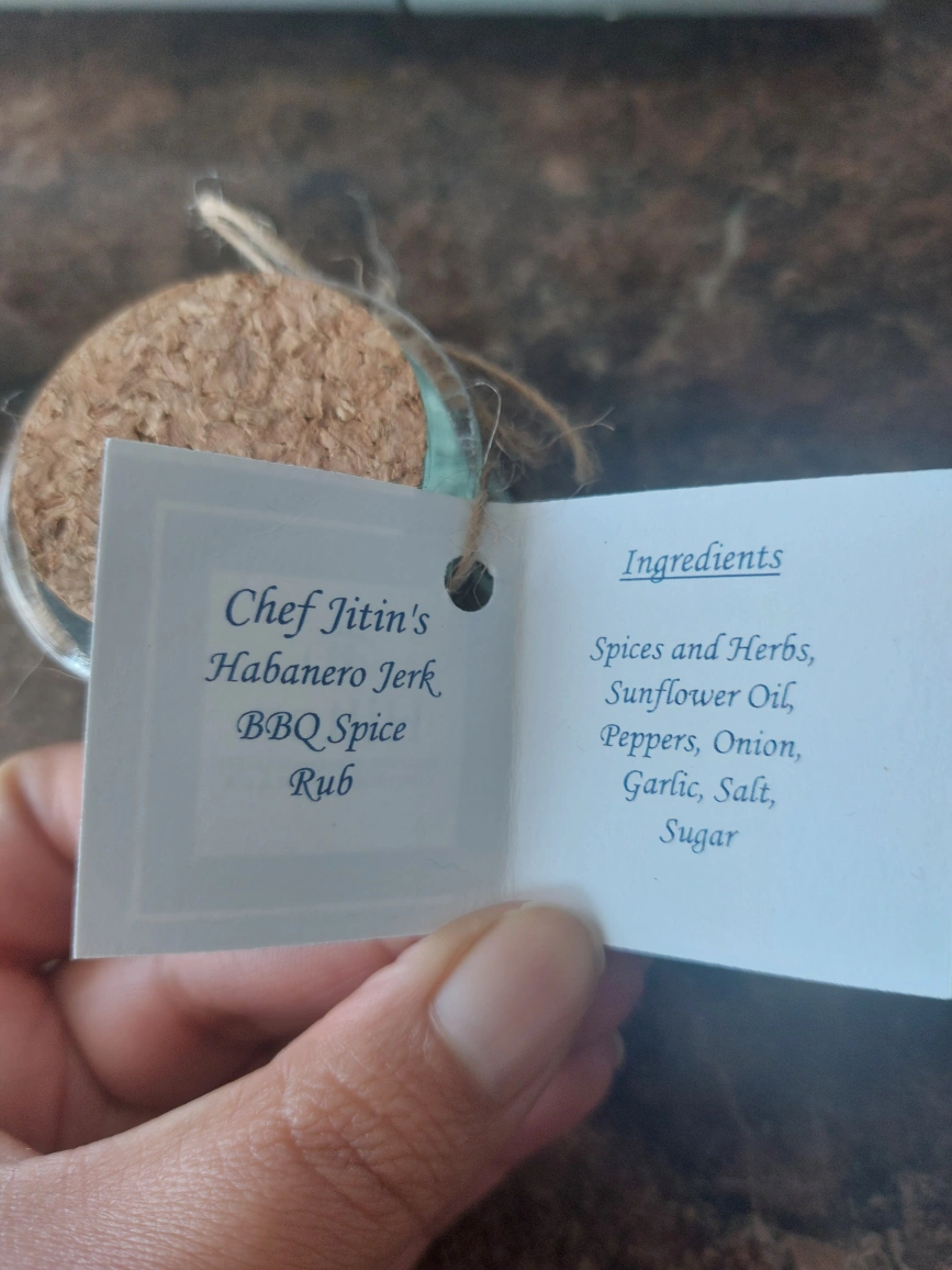 Hilton Chef Jitin's Habanero Jerk BBQ spice rub. Ingredients in second pic. Got as part of a promotion, but have enough spices. Can meet on Bloor line from Ossington to Main Street and Yonge/University line downtown. Available late morning to early afternoon on the weekends, and occasionally in the evening after work during the week. Pickup available too.