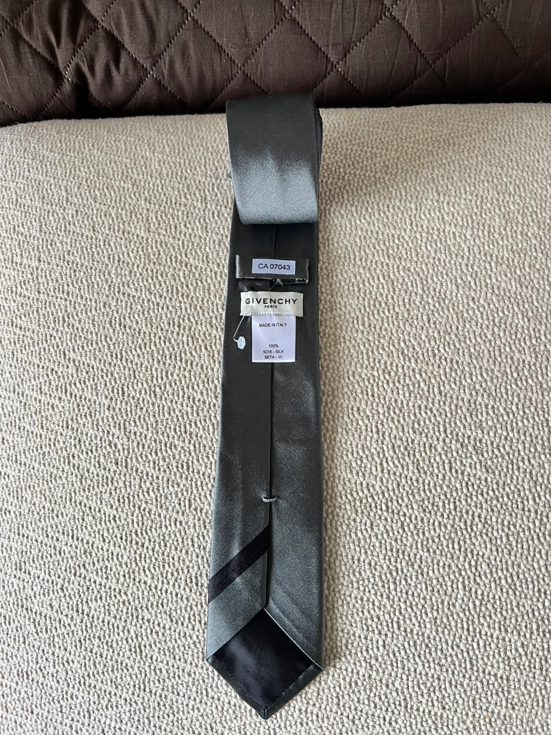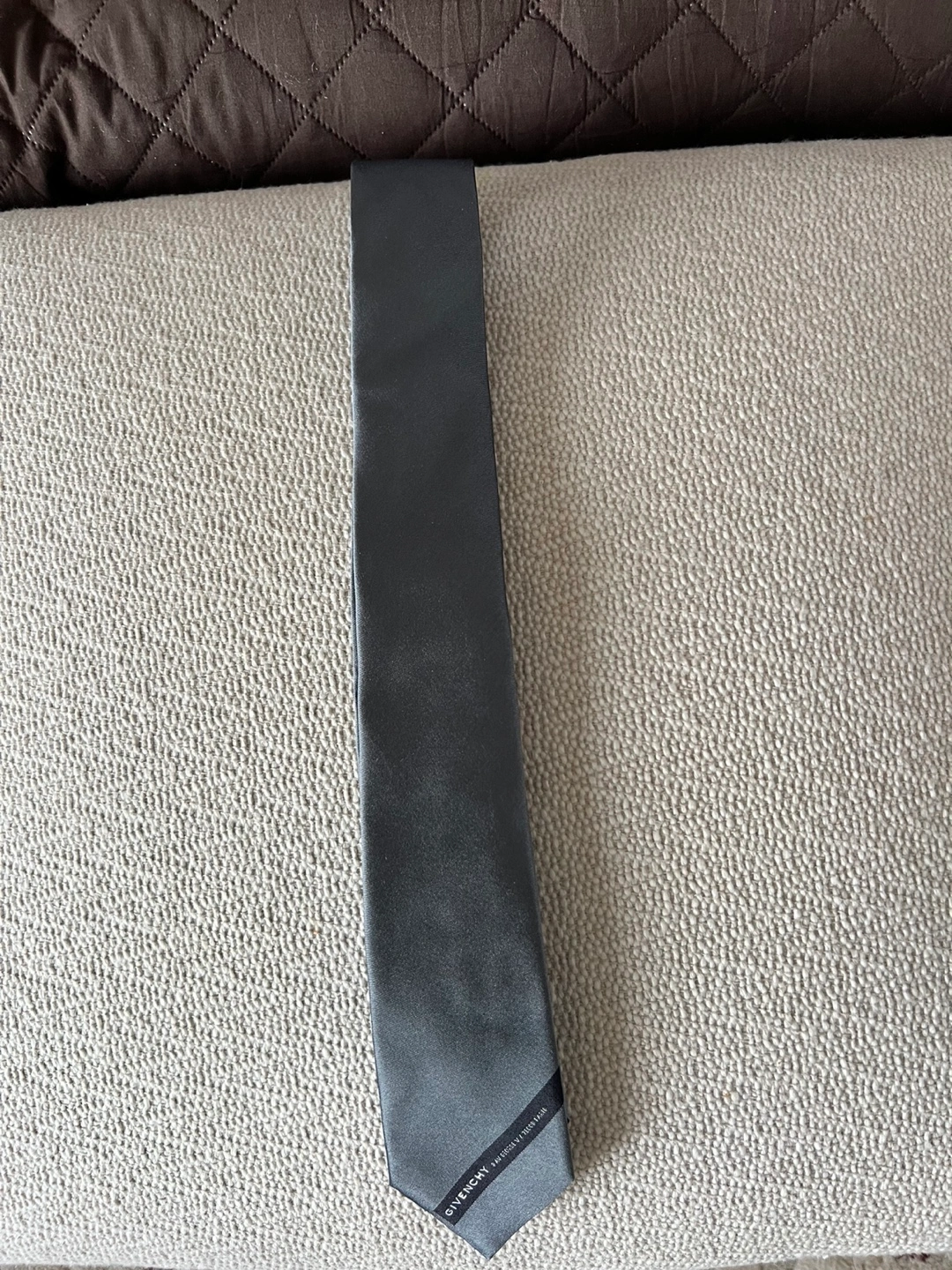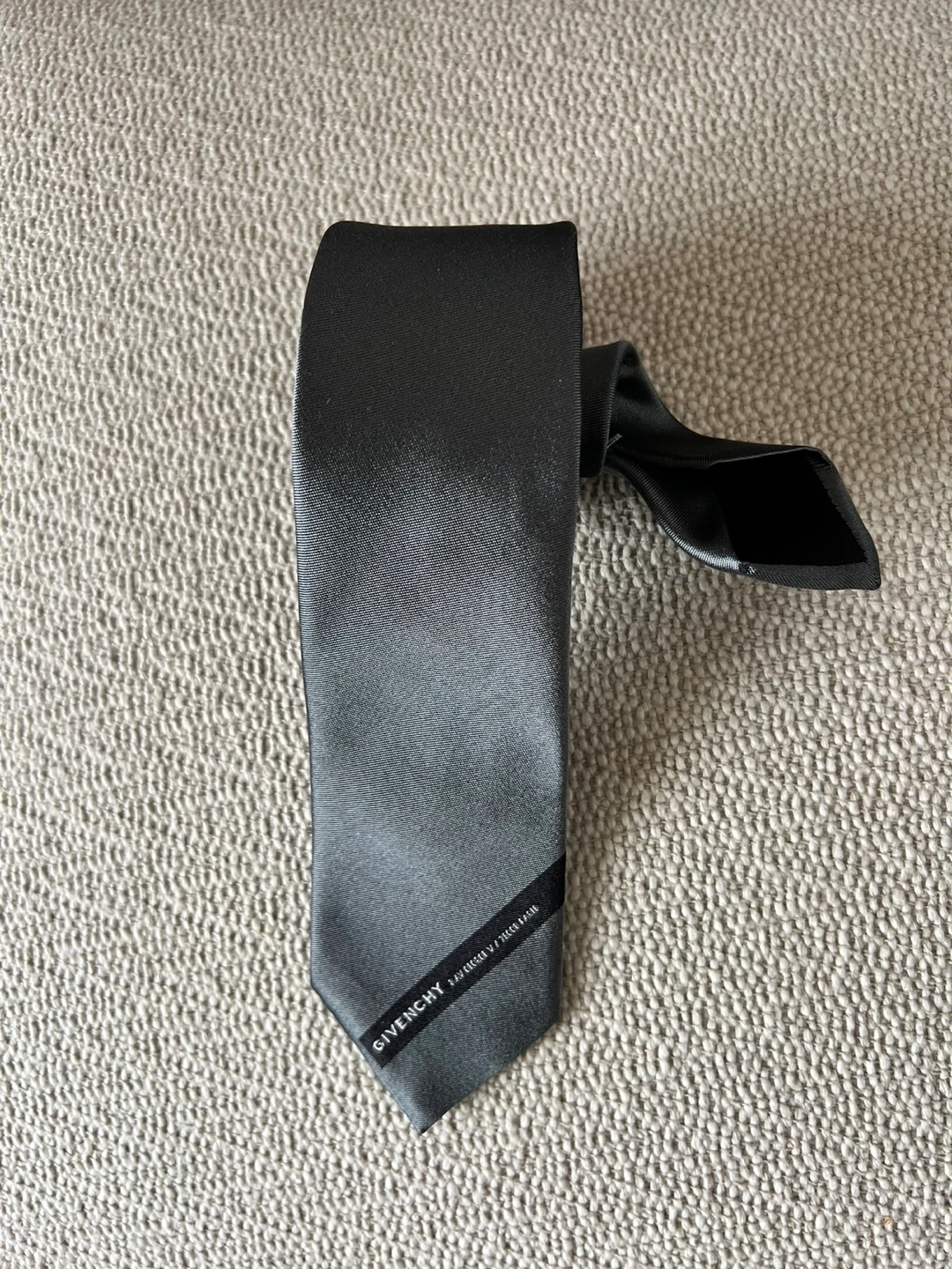 Dark grey silk tie. Subtle black stripe detail. Made in Italy. Givenchy branding. Originally over $150. Price is firm