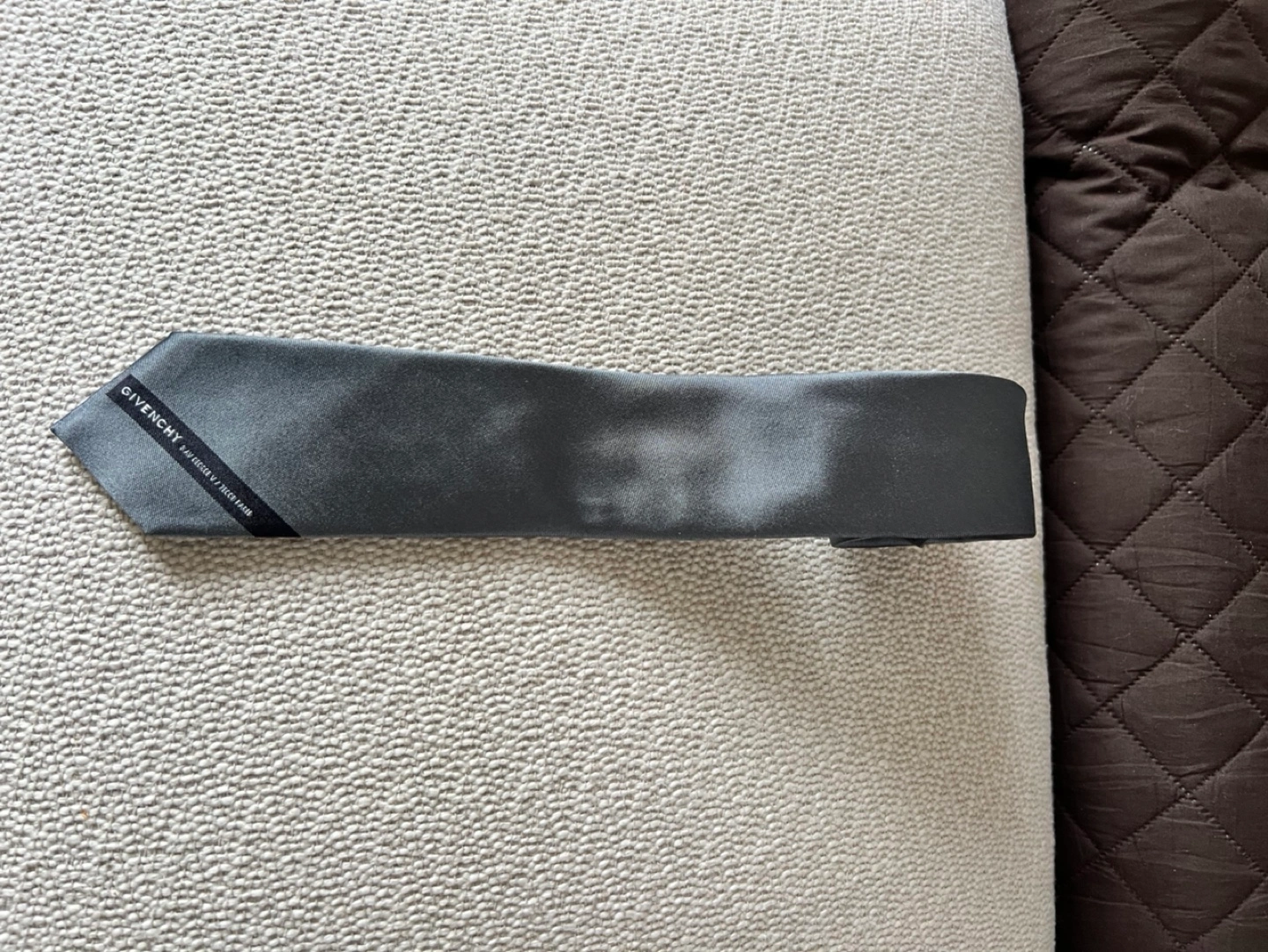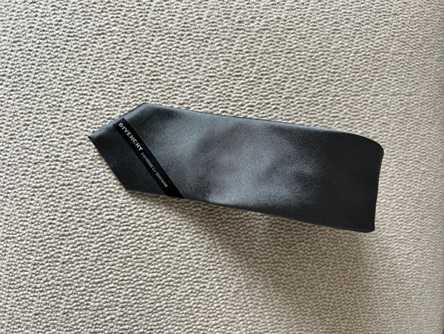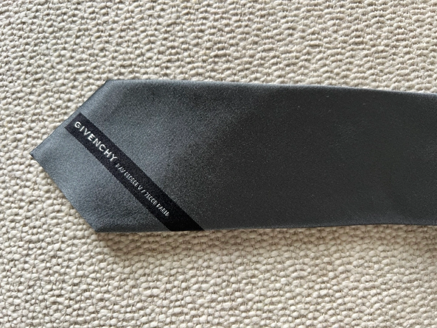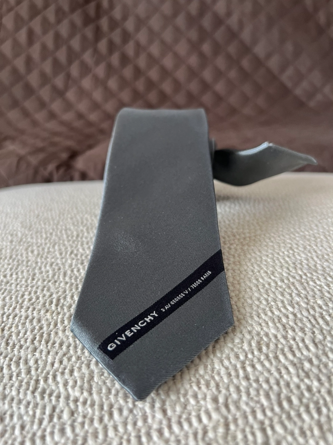 Dark grey silk tie. Subtle black stripe detail. Made in Italy. Givenchy branding. Originally over $150. Price is firm