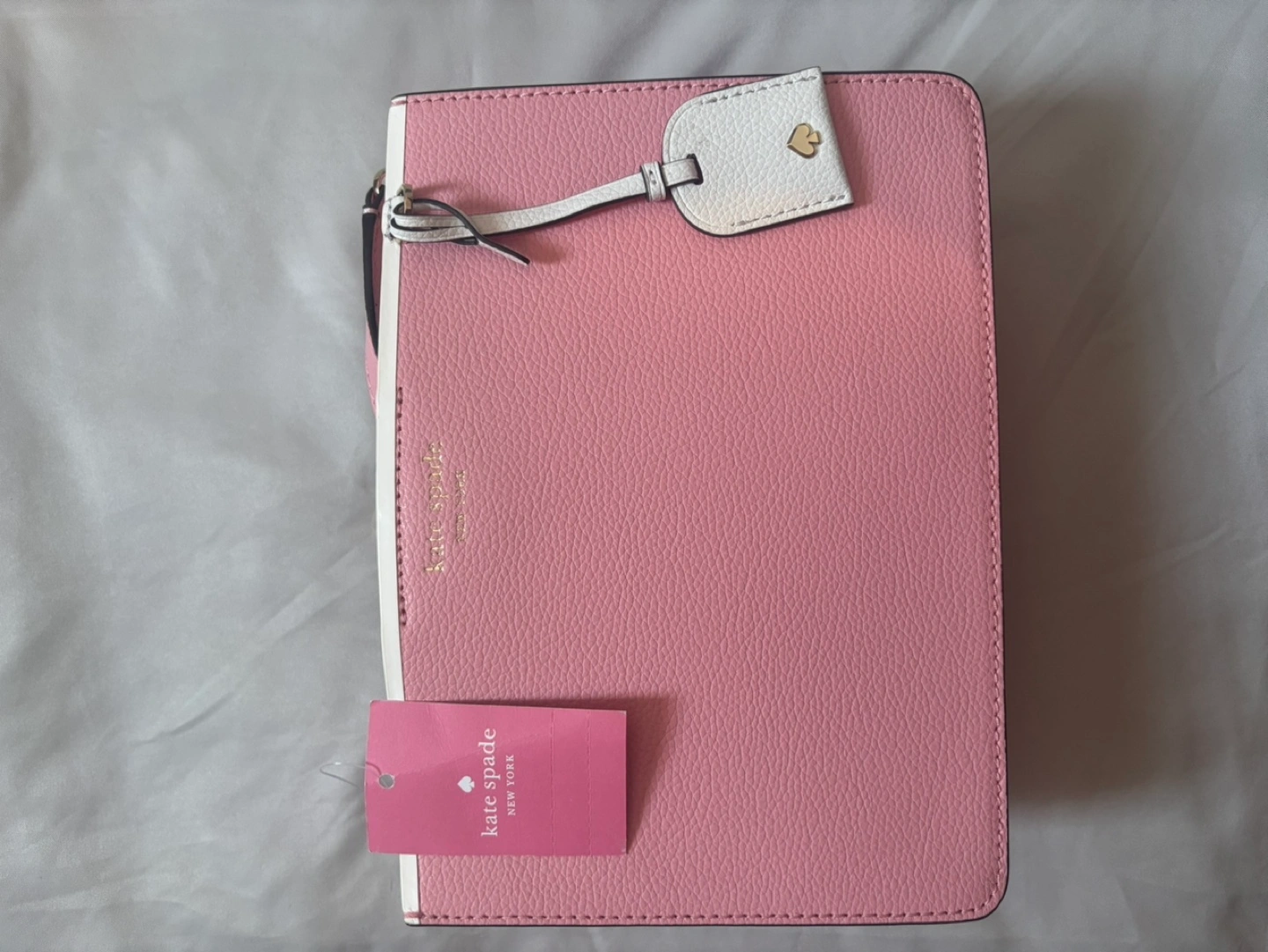 Adorable pink crossbody bag. Features a zip closure and adjustable strap. Interior pockets for organization. Excellent condition, never used.