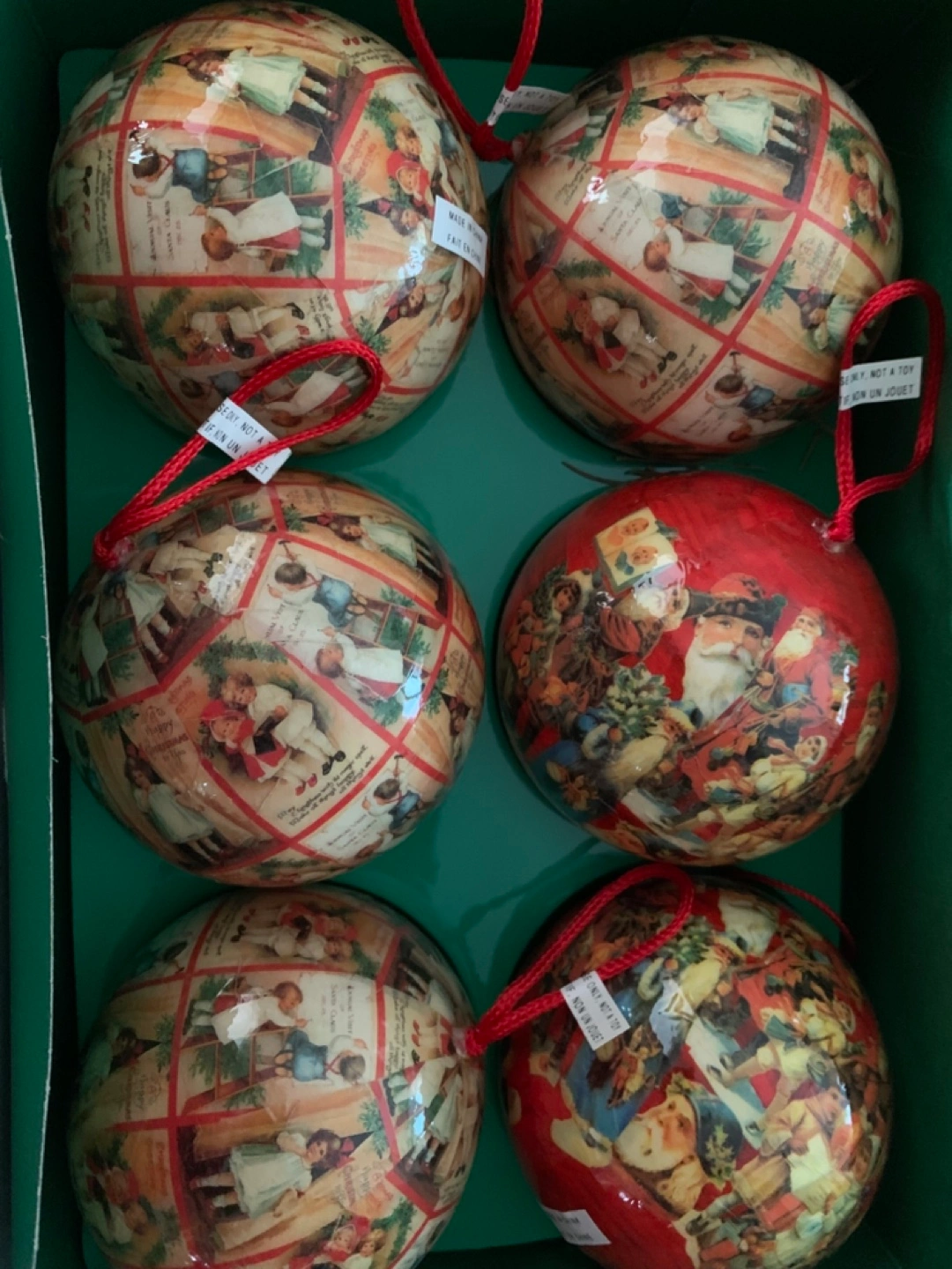 2 boxes of 6 ornaments (Twelve total) vintage-style Christmas ornaments. Vintage Images of children and Santa Claus. Paper mache construction. New- never used $4 per box or $6 deal for both boxed sets. Originally purchased for $6.99 per box at Winners