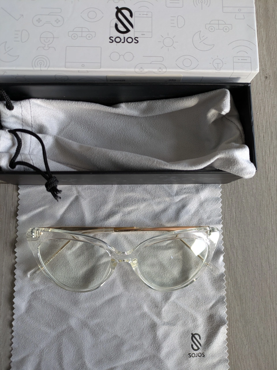 Brand new SOJOS cat eye blue light filter glasses. Clear frames with gold accents. Includes case and cleaning cloth. Stylish and trendy. Effectively protects eyes from screen strain. Selling only because I ended up needing actual prescription glasses. Moving sale - check out my other listings ✨ Pickup at Yonge & Eglinton or downtown on weekdays.