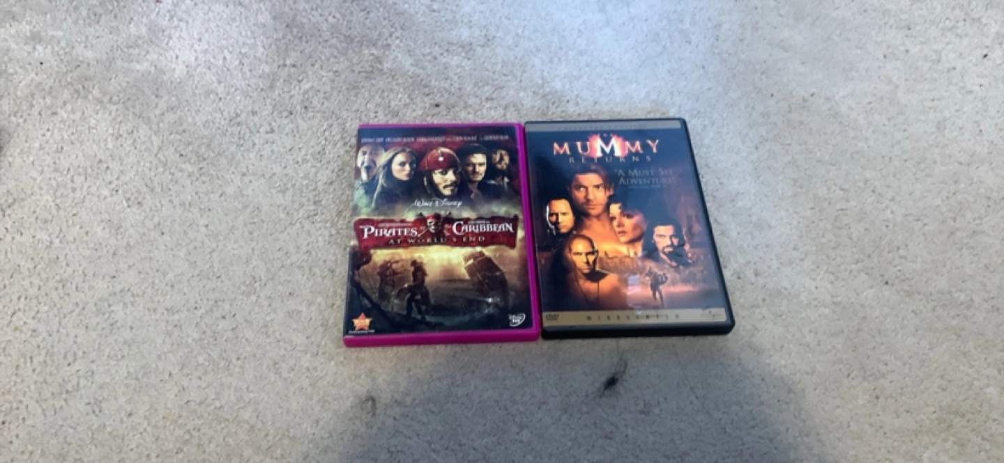 Movies - $2 Two DVDs for sale. Pirates of the Caribbean: At World's End and The Mummy Returns. Pre-owned. Great condition.