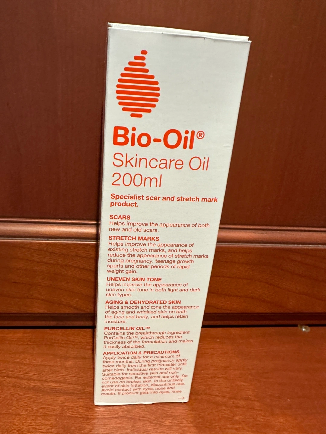 200ml bottle of Bio-Oil Skincare Oil. Suitable for sensitive skin. Bio-Oil is a specialist scar and stretch mark product. It can be used to help improve the appearance of scars, stretch marks, uneven skin tone, aging and dehydrated skin. It contains the breakthrough ingredient PurCellín Oil™ which reduces the thickness of the formulation and makes it easily absorbed.