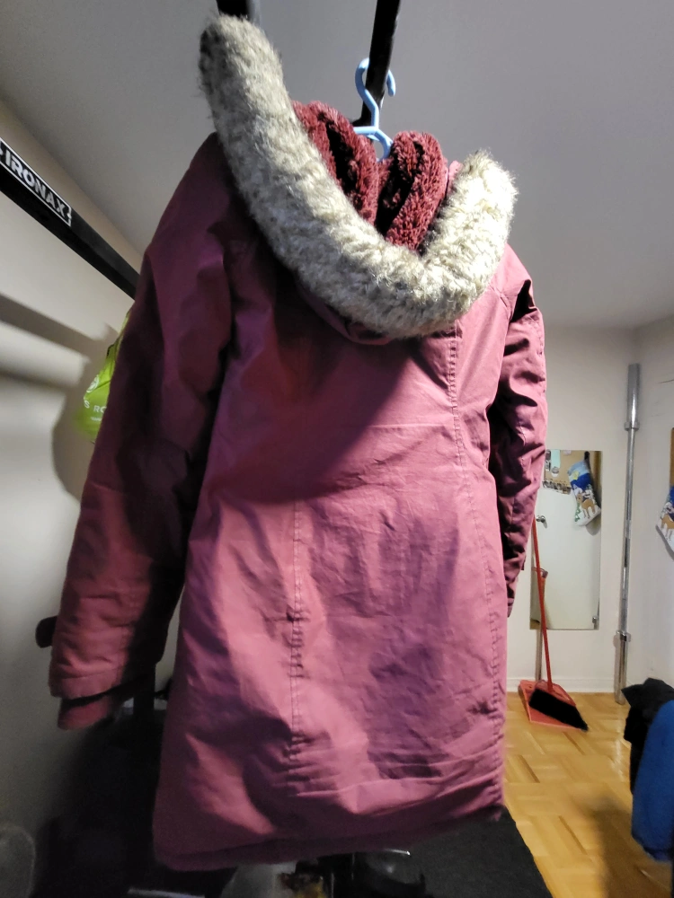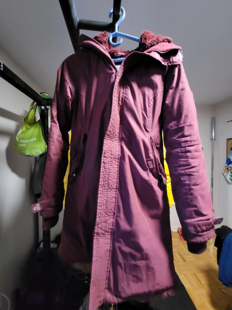 Women's size small burgundy parka. Faux fur trim hood. Meet up at St. James Community Centre (Sherbourne and Wellesley)