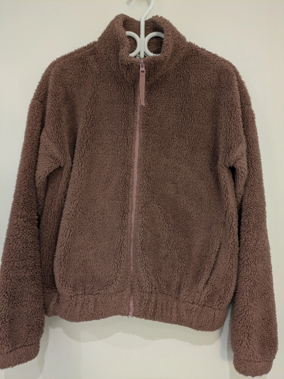Mauve teddy fleece zip-up jacket (has more purple/pinkish tones than the photo shows) Purchased from Nordstrom Rack for $45. Size small. Soft, warm and cozy. Perfect for layering or lounging in. Has two pockets.