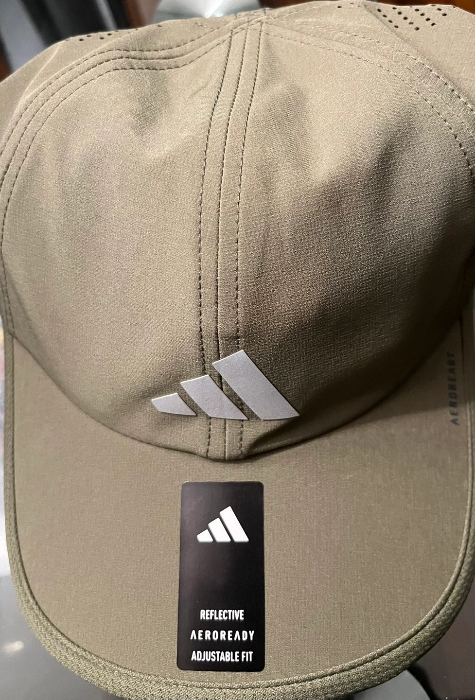 Olive green golf hat. Features reflective Adidas logo. Adjustable fit. Aeroready technology. New with tags. Pick up from Maple Vaughan major intersection keele and Rutherford.