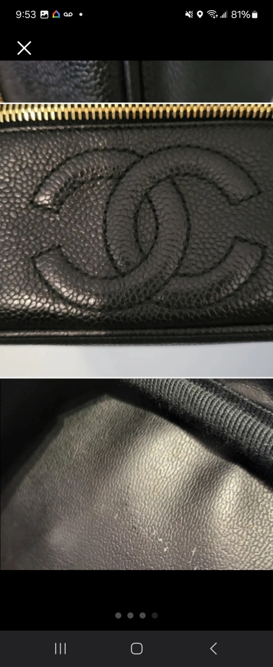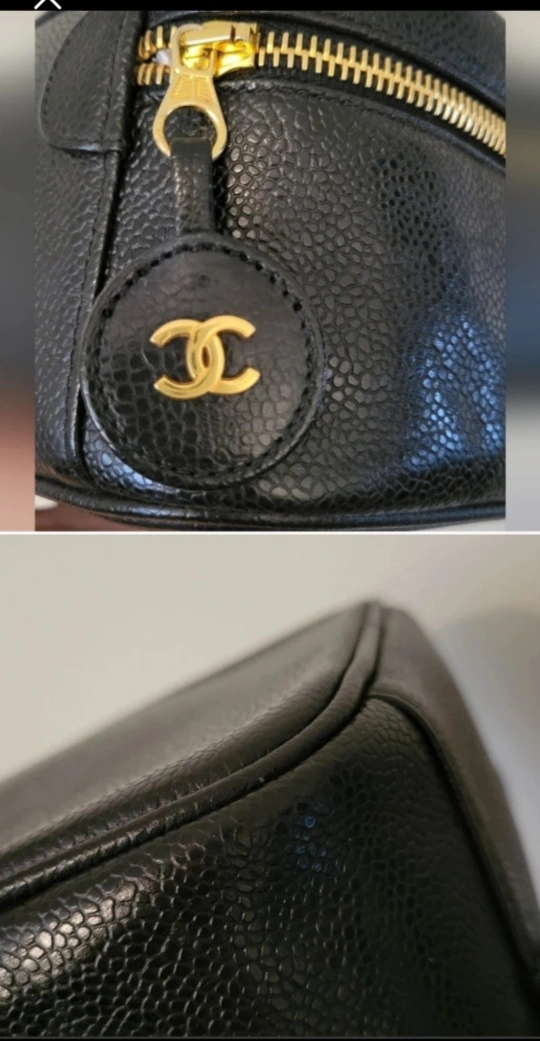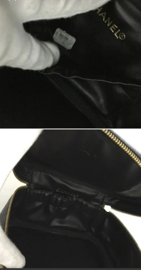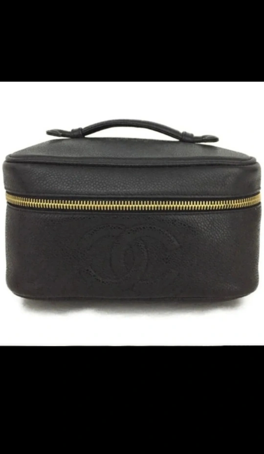 VERY RARE Excellent condition Vintage Caviar CC Logo Vanity/Makeup bag/Cometic bag in black Caviar. Serial: 3631856 approx size: 9"L x 5"D x 4.5"H Very clean interior with a small mark inner lid (photo makes it look worse than it is). Purchased from Japan.