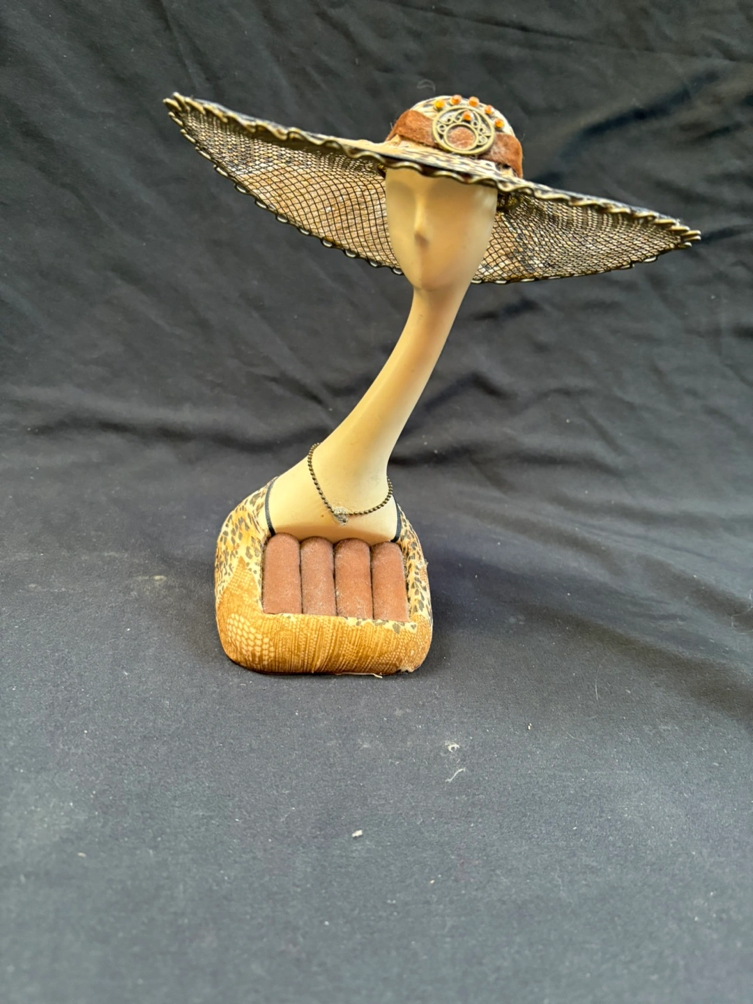 🥕Like new Unique jewellery holder. Features a woman's bust wearing a wide-brimmed leopard print hat. Includes slots for rings. Stylish and practical $1 Pick up Victoria Park and O’Connor area