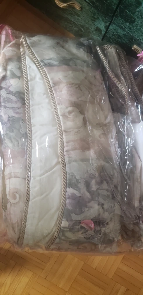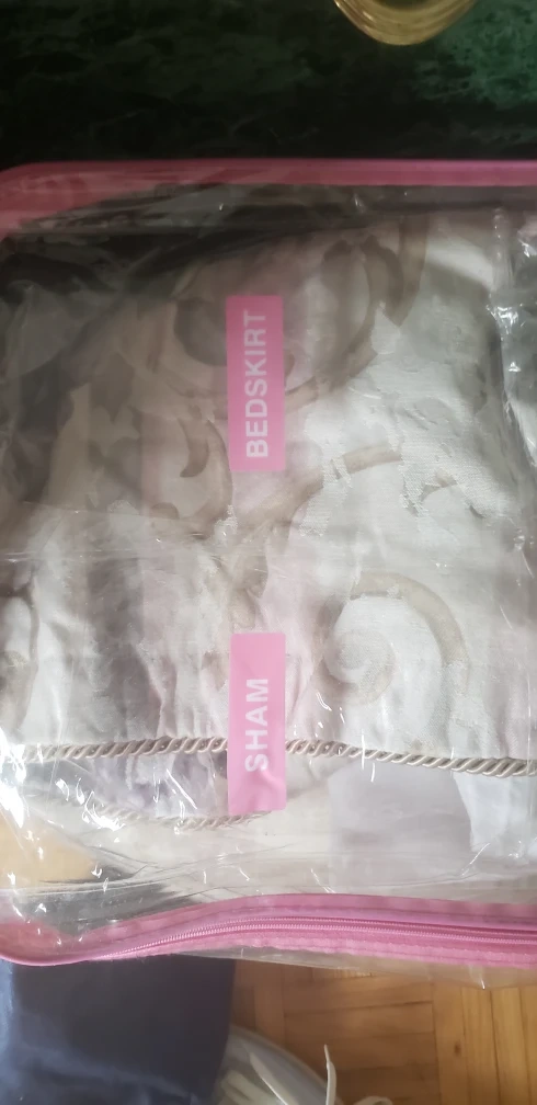 Beautiful queen-size bed skirt and sham set. Floral pattern, neutral colours. In very good condition, in original packaging.