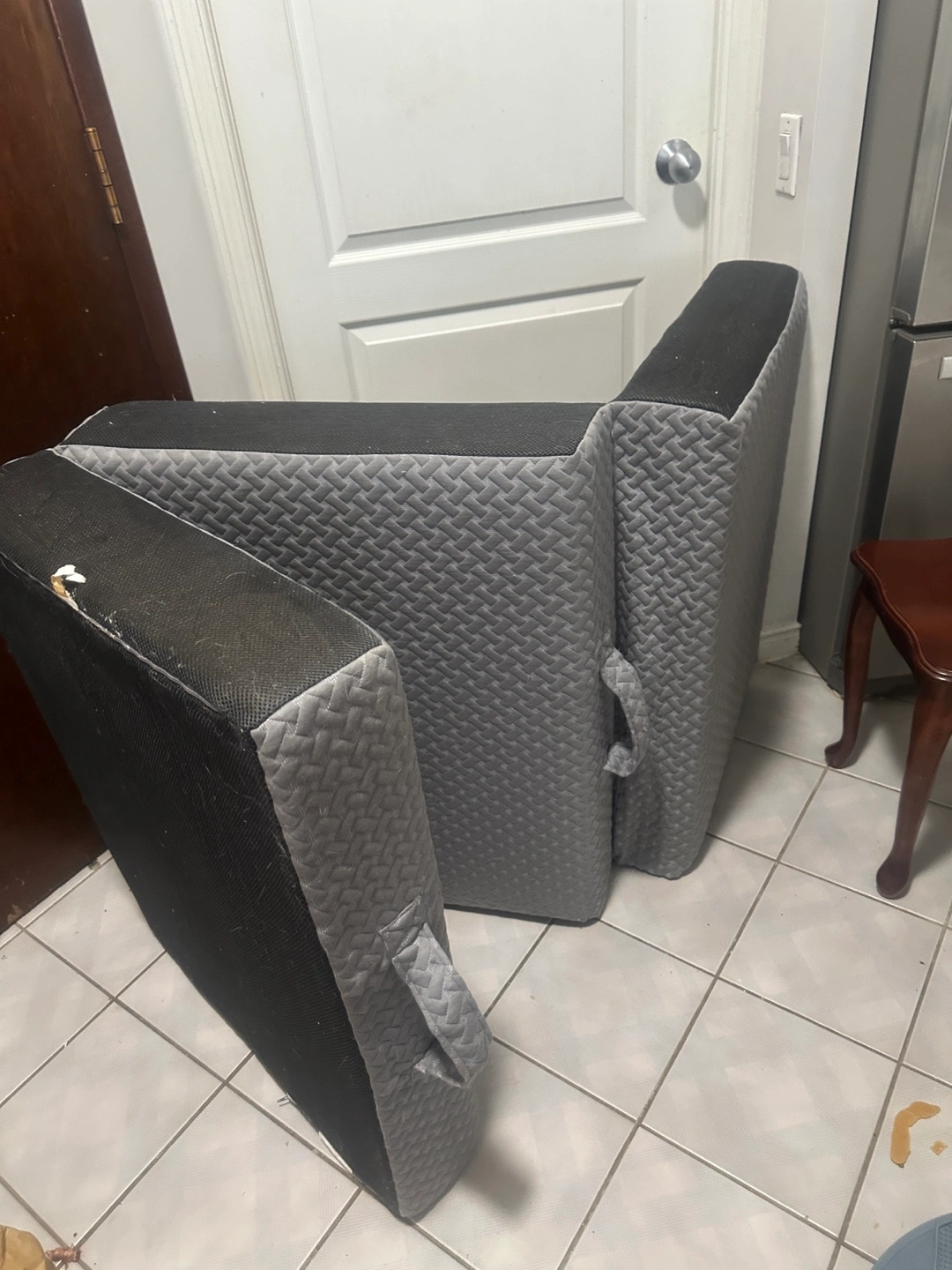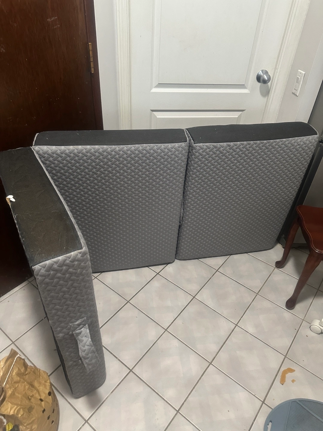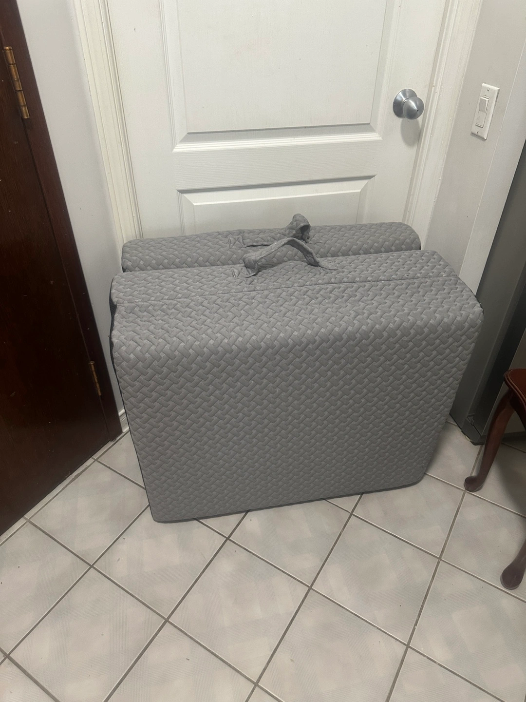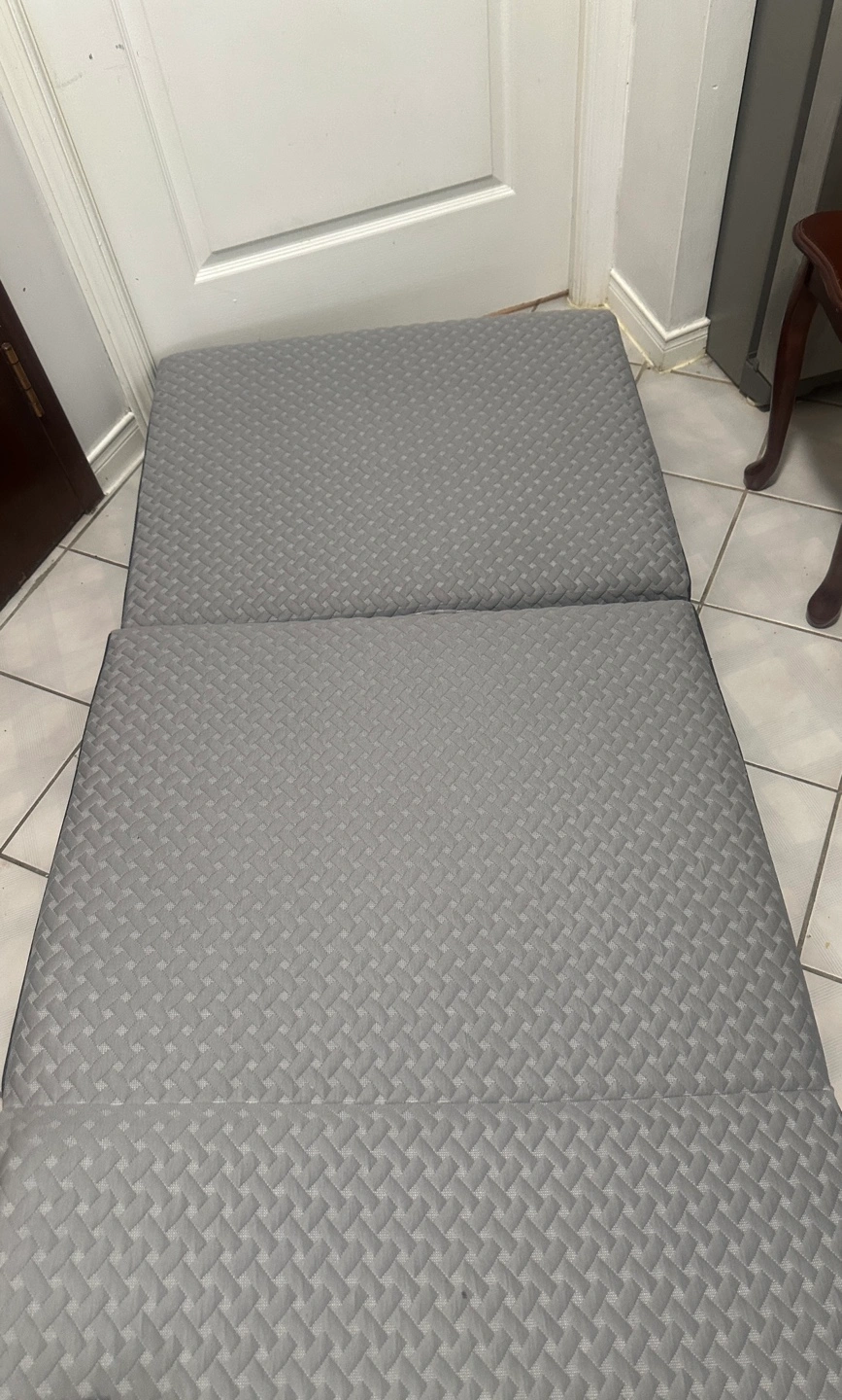 Gray foldable mattress. Three sections. Convenient carrying handles. Great for guests or travel. Very comfortable:)) ⚠️Check out my other listings for more. NEEDS to be gone by Feb 18 … 19th at the latest ‼️