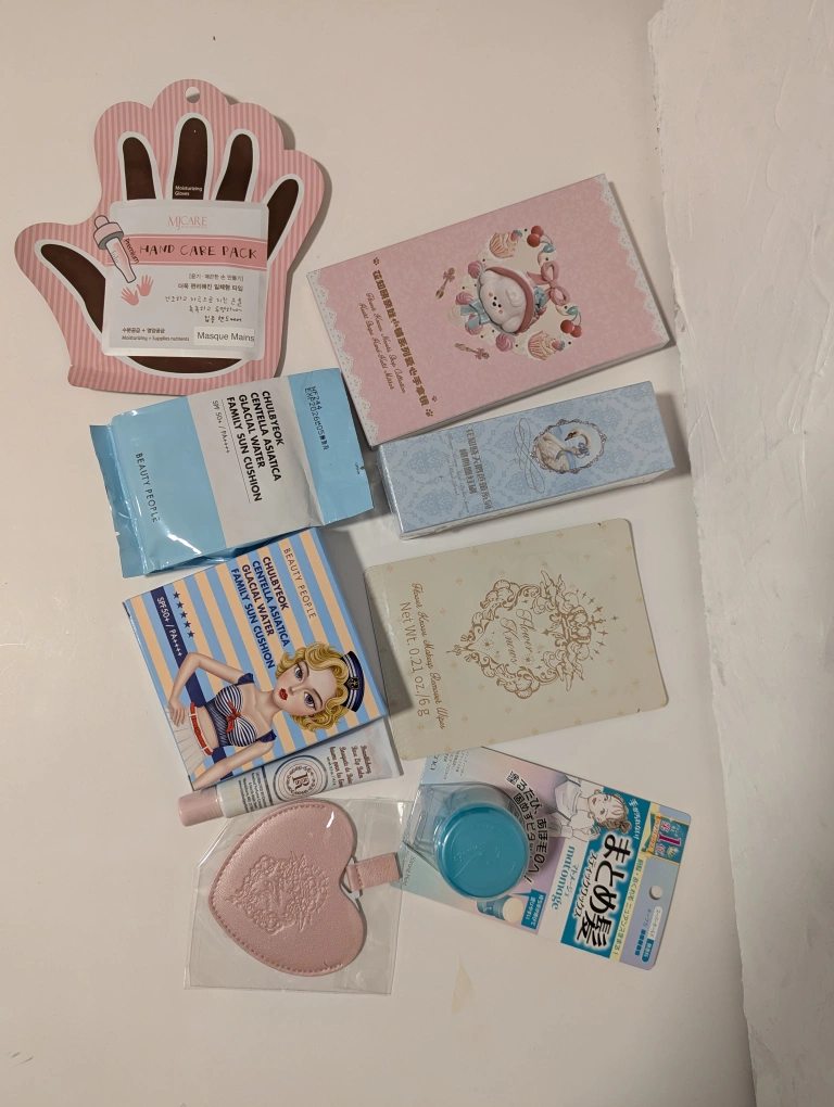 Flower Knows Mirror, heart mirror, makeup brush, and KBeauty masks, cushion compact, hair stick and lip balm. Pick up near Birchmount/Ellesmere. Cash only.