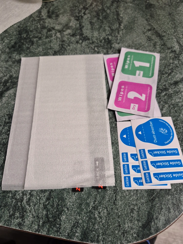 New, box of two 9H hardness tempered glass screen protectors. Includes cleaning wipes and dust removal stickers. Anti-fingerprint and scratch-resistant. pick up only and cash price Firm no offers thx