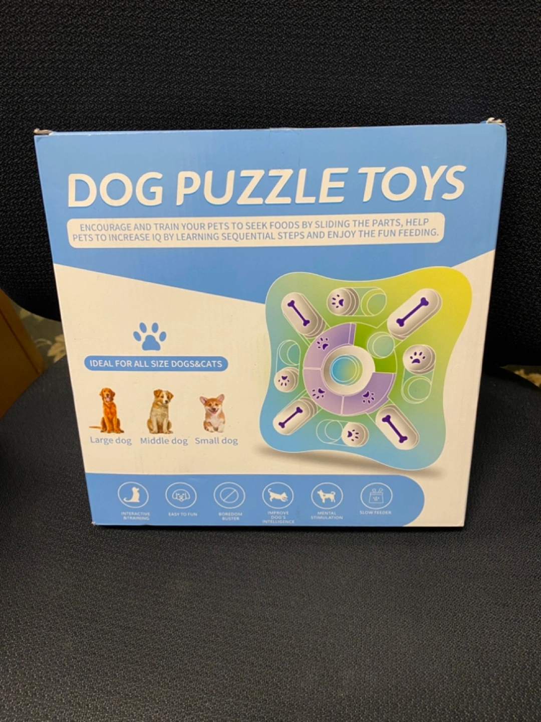 Fun puzzle toy for dogs and cats. BPA-free, dishwasher safe, and made of anti-slip rubber. Improves intelligence and reduces destructive behaviour. Slow feeder design. Suitable for all sizes. Cash only