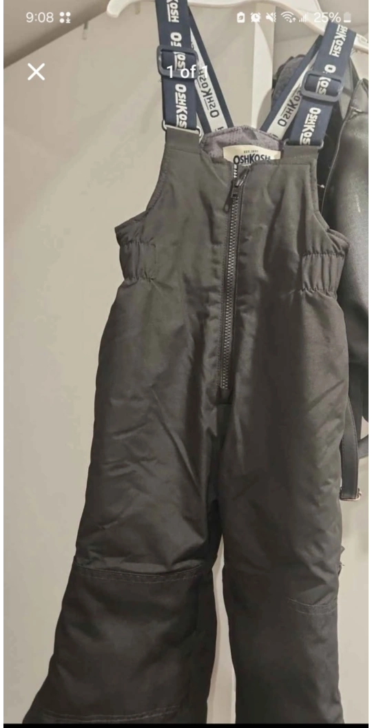 Black snow pants. Zipper closure. Adjustable suspenders. Good for winter. size 4