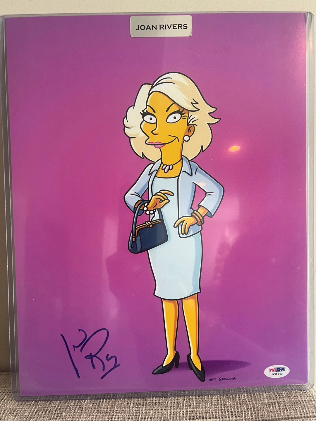 Autographed Simpsons artwork featuring Joan Rivers. Matt Groening illustration. PSA/DNA certificate of authenticity included. Verification number W31943.