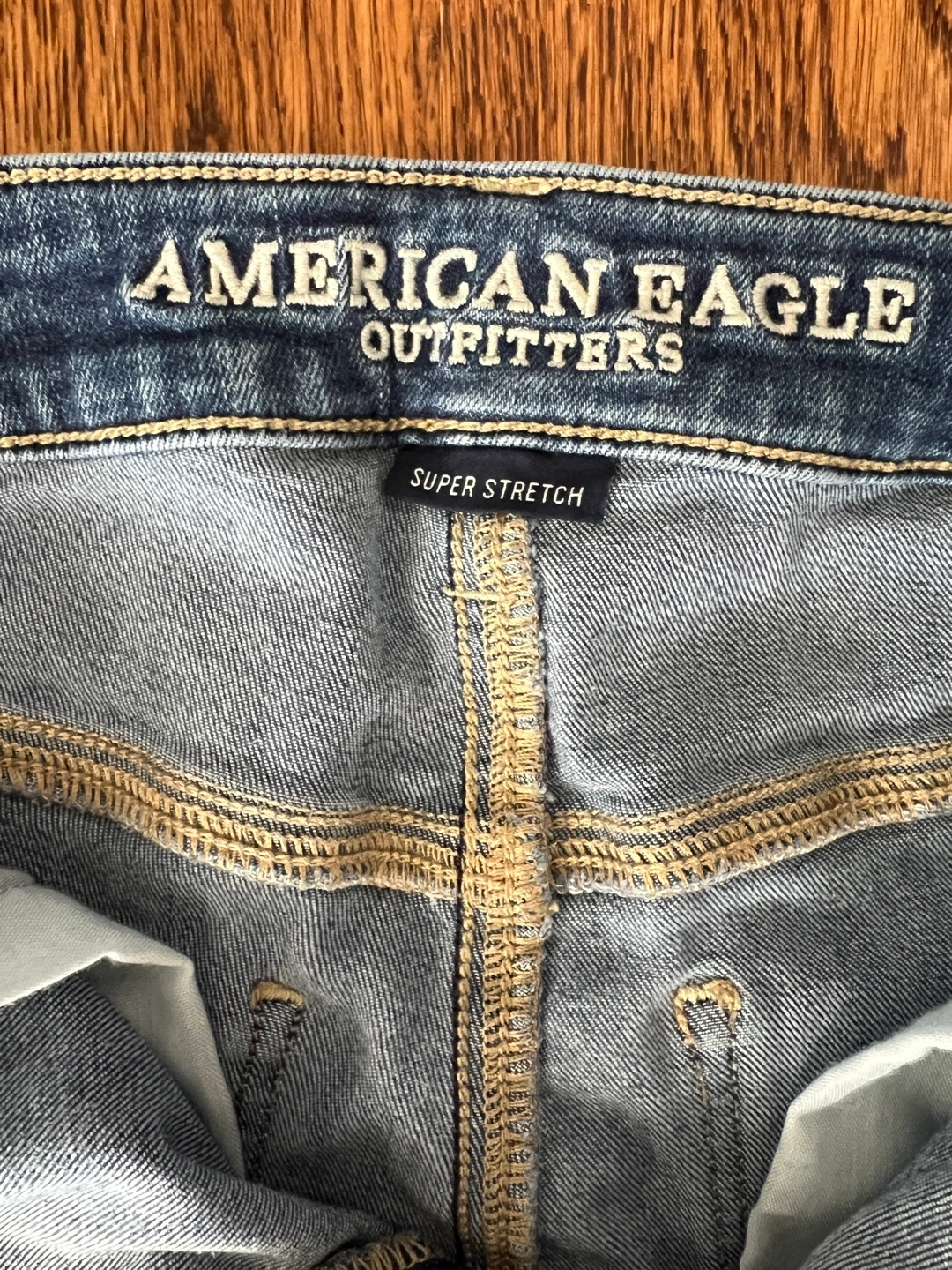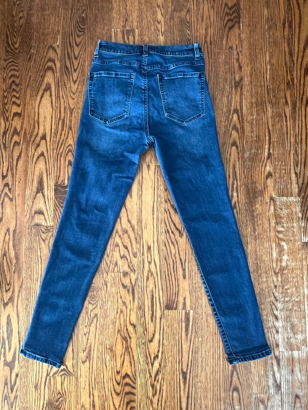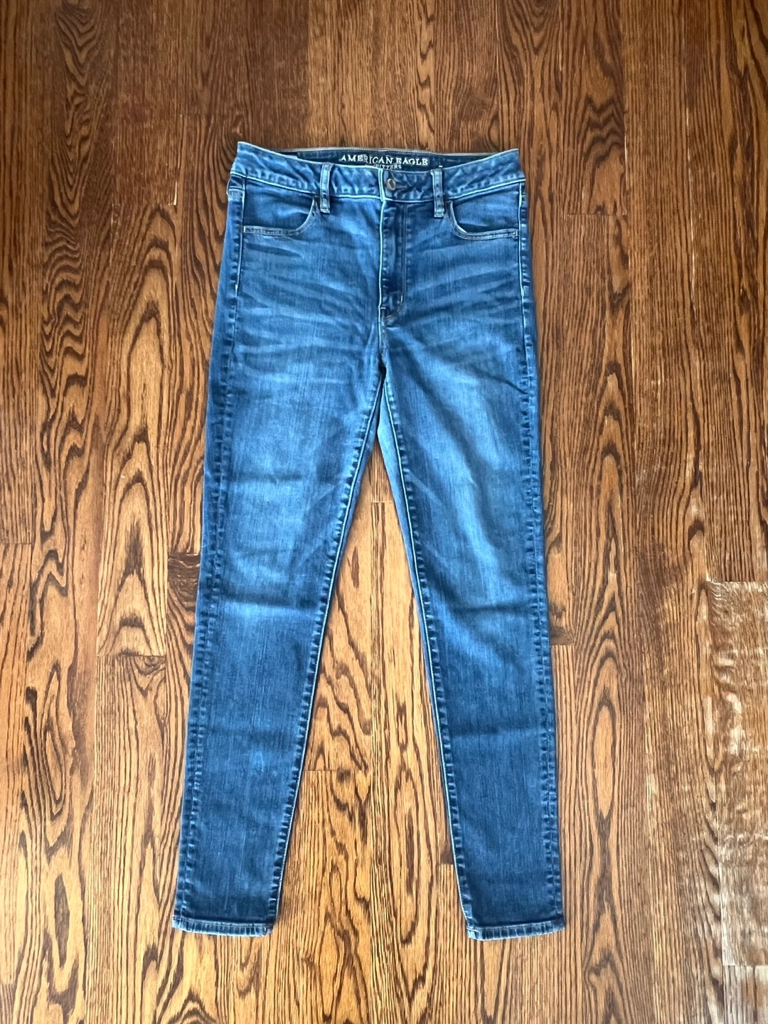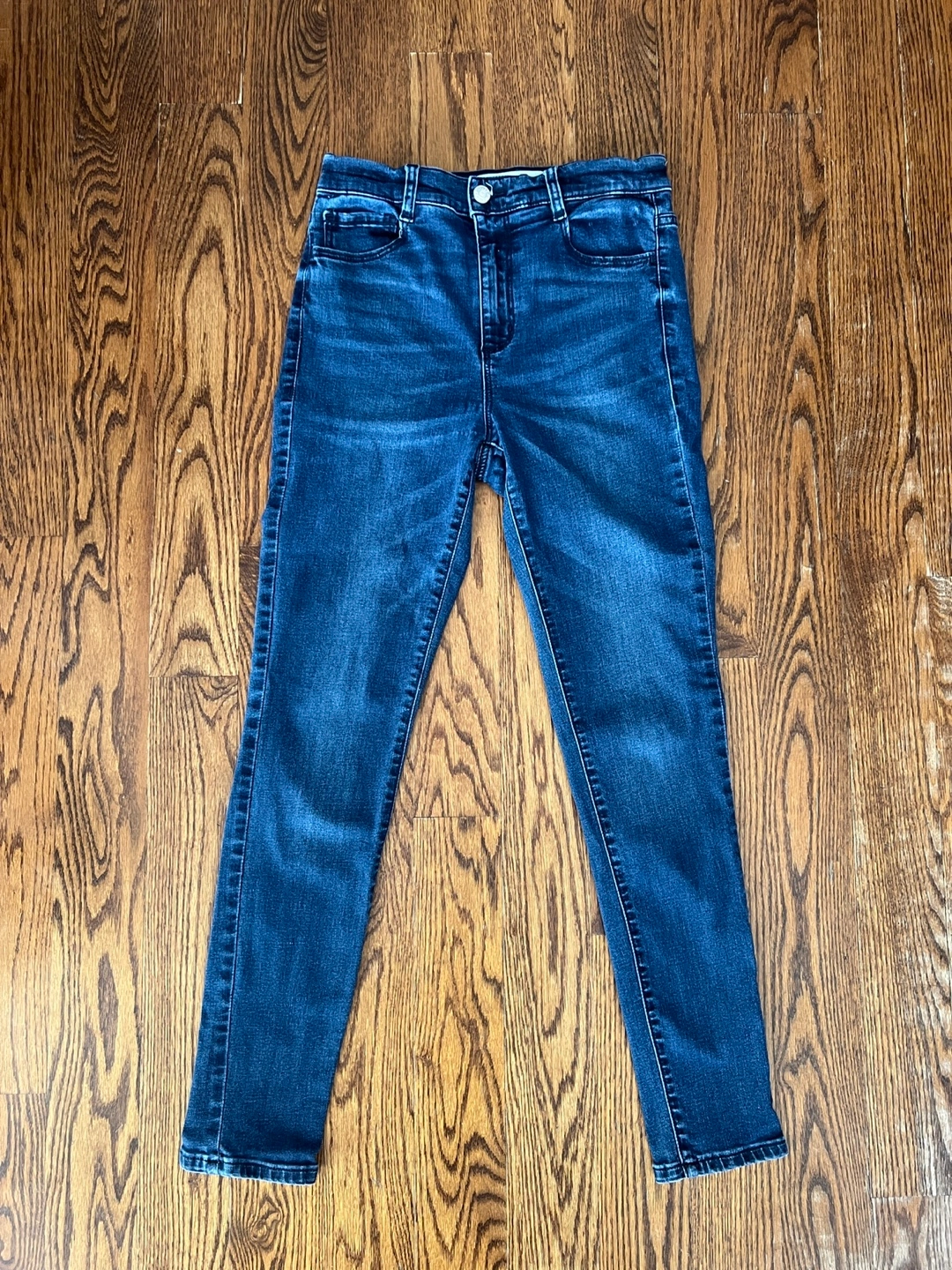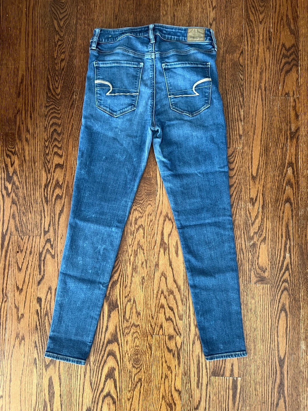 Bundle includes three pairs of jeans and one pair of navy corduroy pants. Sizes are medium, 6/7, Good condition. American Eagle, Garage, and Forever 21 brands included.