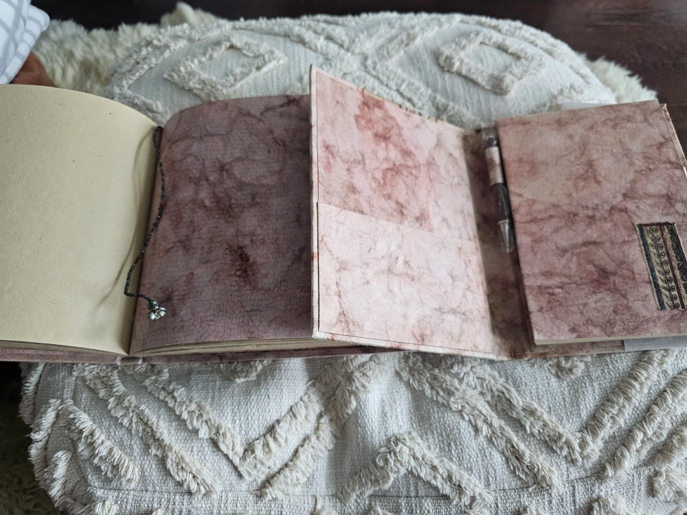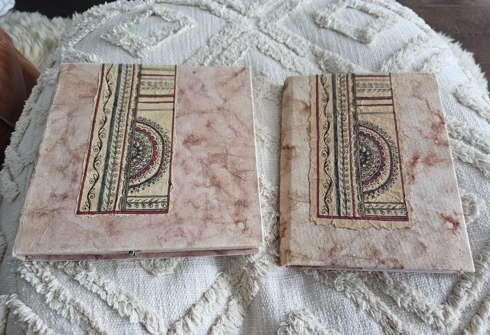 Set of two unique journals. Handcrafted covers. One journal includes a pen loop and inner pockets. Beautiful paper. Perfect for journaling, sketching, or collecting memories. Free to a good home for someone who appreciates the beauty of these two pieces of art!