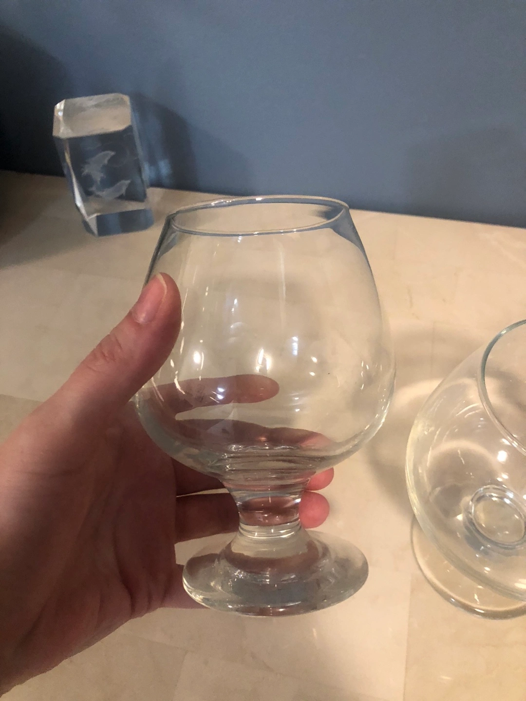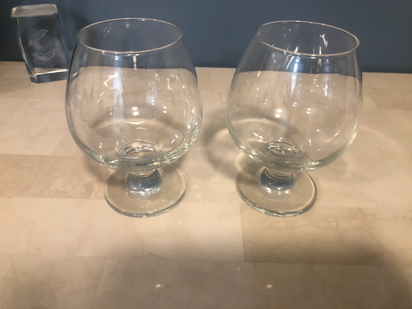 Two elegant brandy snifters. Clear glass. Perfect for serving your favourite drinks. Excellent condition.