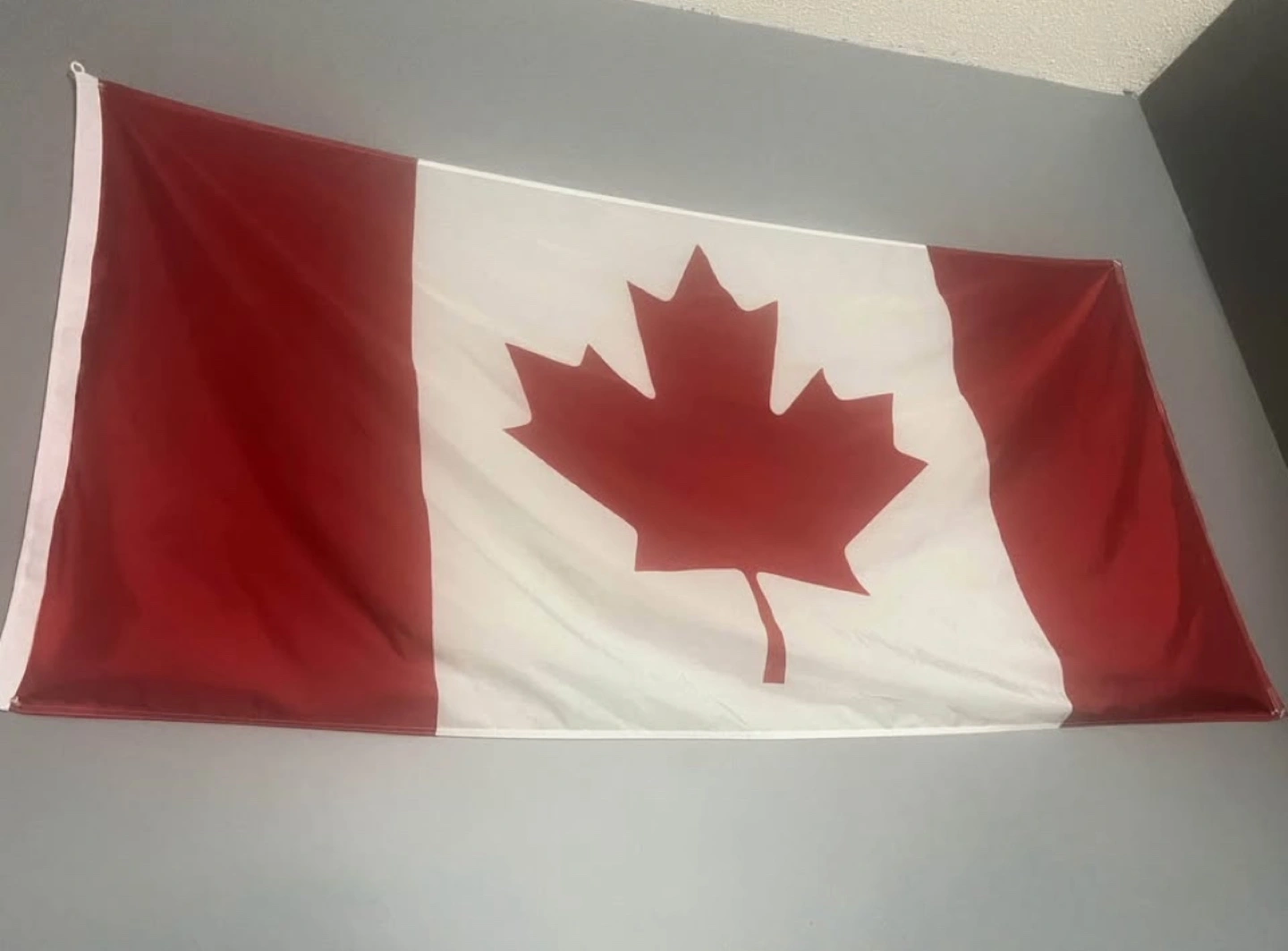 Large Canadian flag. Red and white. Great for displaying patriotism.