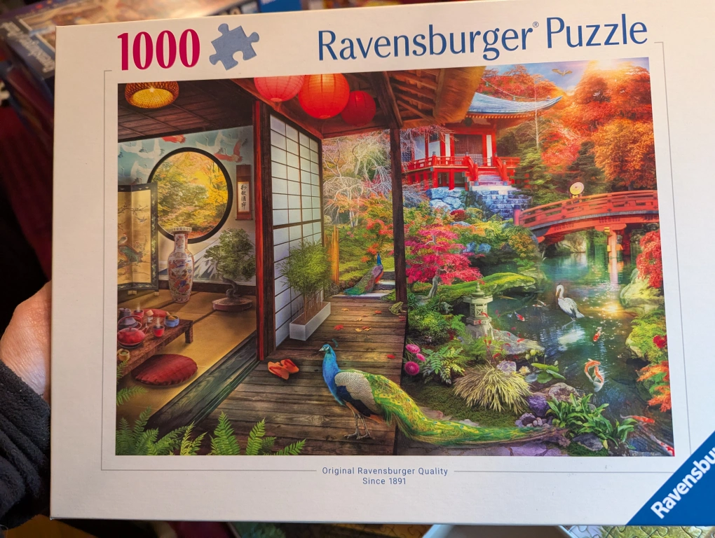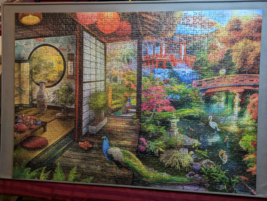 Excellent condition, like new. Completed 1000-piece jigsaw puzzle. Beautiful Japanese garden scene. Peacocks and other birds. Can meet near Empress Walk in North York. $15